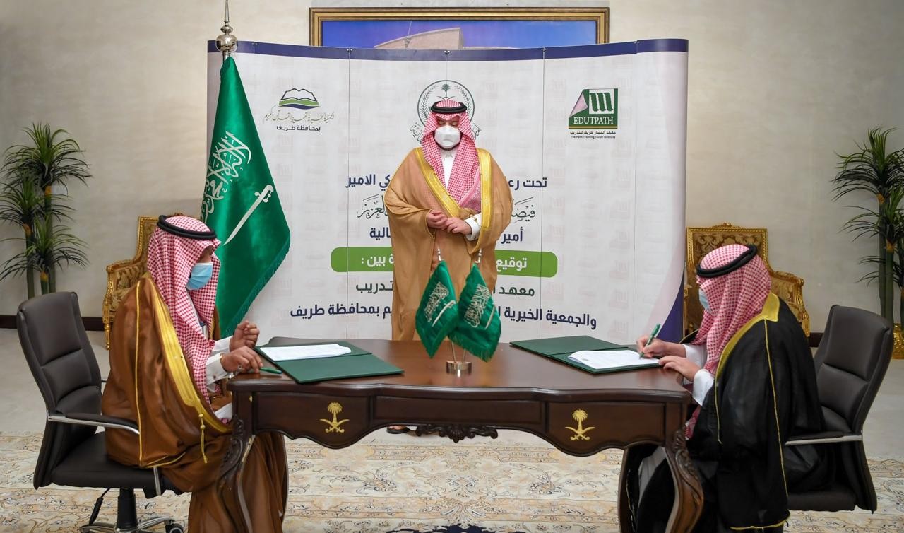 سمو أمير الحدود الشمالية يشهد توقيع اتفاقية تعاون بين جمعية تحفيظ القرآن الكريم بطريف ومعهد المسار للتدريب