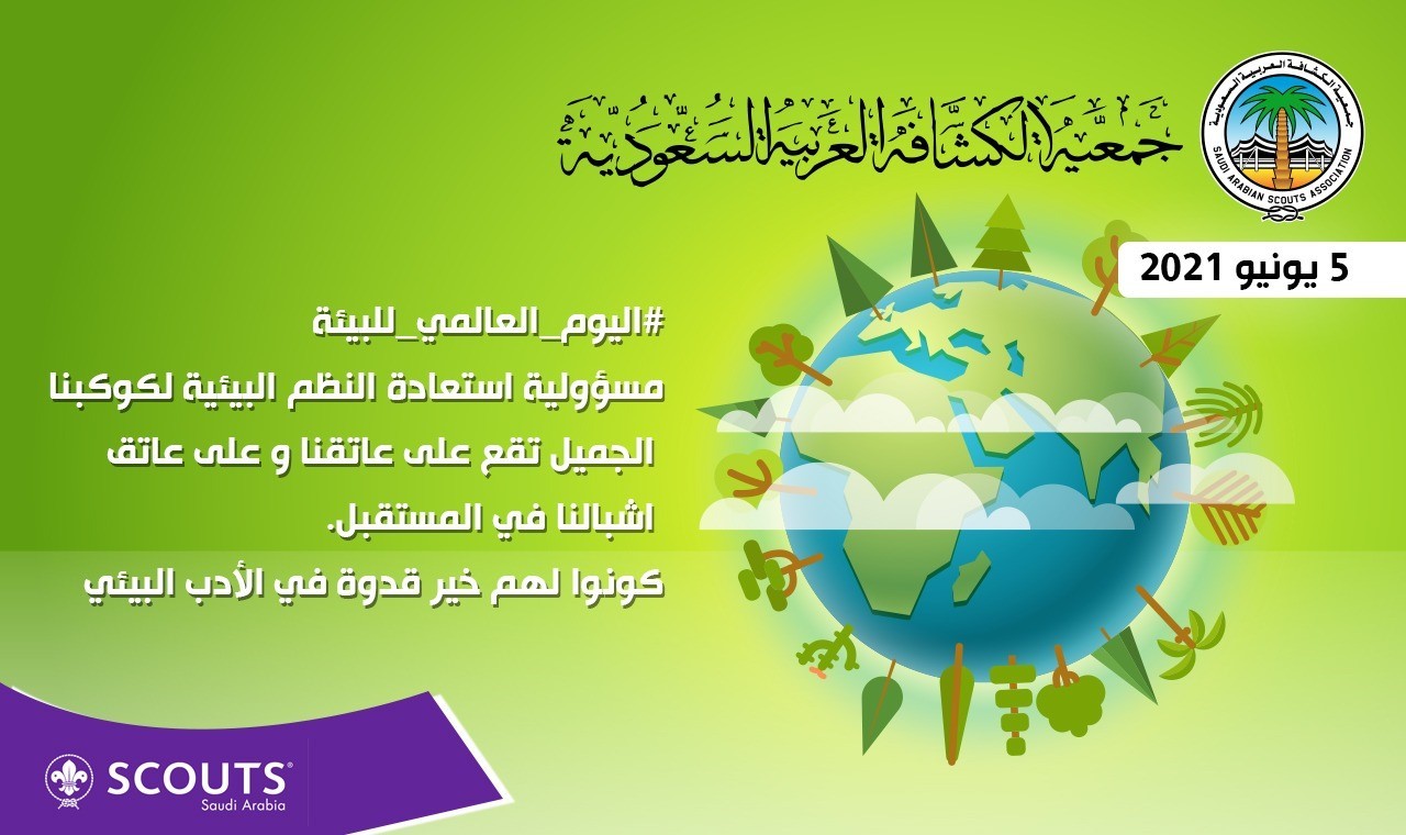شاركت جمعية الكشافة العربية السعودية ، اليوم في إحياء اليوم العالمي للبيئة ، أحد أكبر الأحداث السنوية التي تنظمها الأمم المتحدة (UN) في الخامس من يونيو من كل عام للتذكير بأهمية الطبيعة والمساحات الخضراء، ورفع الوعي لدى الناس لاحترام البيئة والحفاظ عليها، حيث أُقيم تحت شعار "استعادة النظام البيئي"