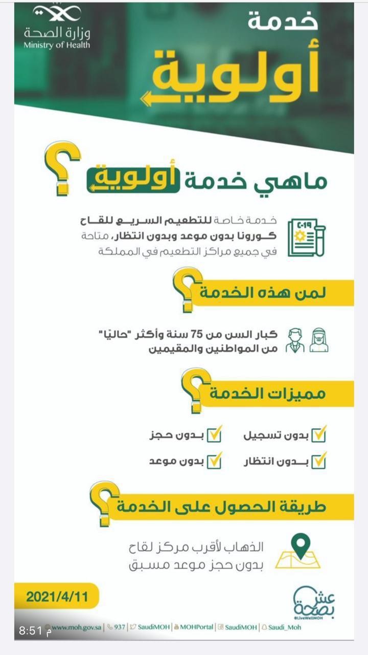 وتختص الحملة بكبار السن من 75 عامًا وأكثر من المواطنين والمقيمين،  حيث تتميز الحملة بإتاحة زيارة مراكز اللقاحات دون تسجيل،  وانتظار،  وحجز،  وكذلك دون موعد مسبق.