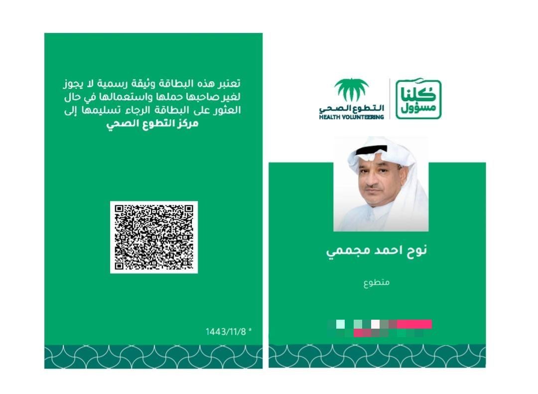 منحت وزارة الصحة الزميل "الأستاذ نوح أحمد مجممي" بطاقة التطوع الصحي بعد إجتيازه للبرنامج التدريبي التطوع الصحي المجتمعي .