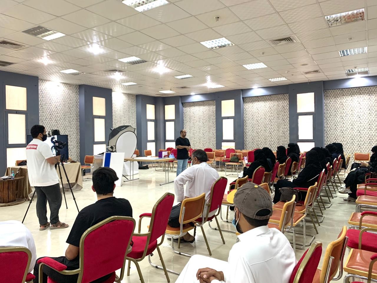 وأوضح العنزي في بداية الورشة عن تعريف تصوير المنتجات والأطعمة كفن وصناعة ، بعدذلك تطرق لأهم العدد والأدوات المستخدمة ثم التكوين وأبرز الزوايا المستخدمة وتوزيع الإضاءة الصحيح ، بعدذلك انتقل للتطبيق العملي على بعض المنتجات ثم طبق المشاركين في ثلاث لوكيشنات في موقع الورشة