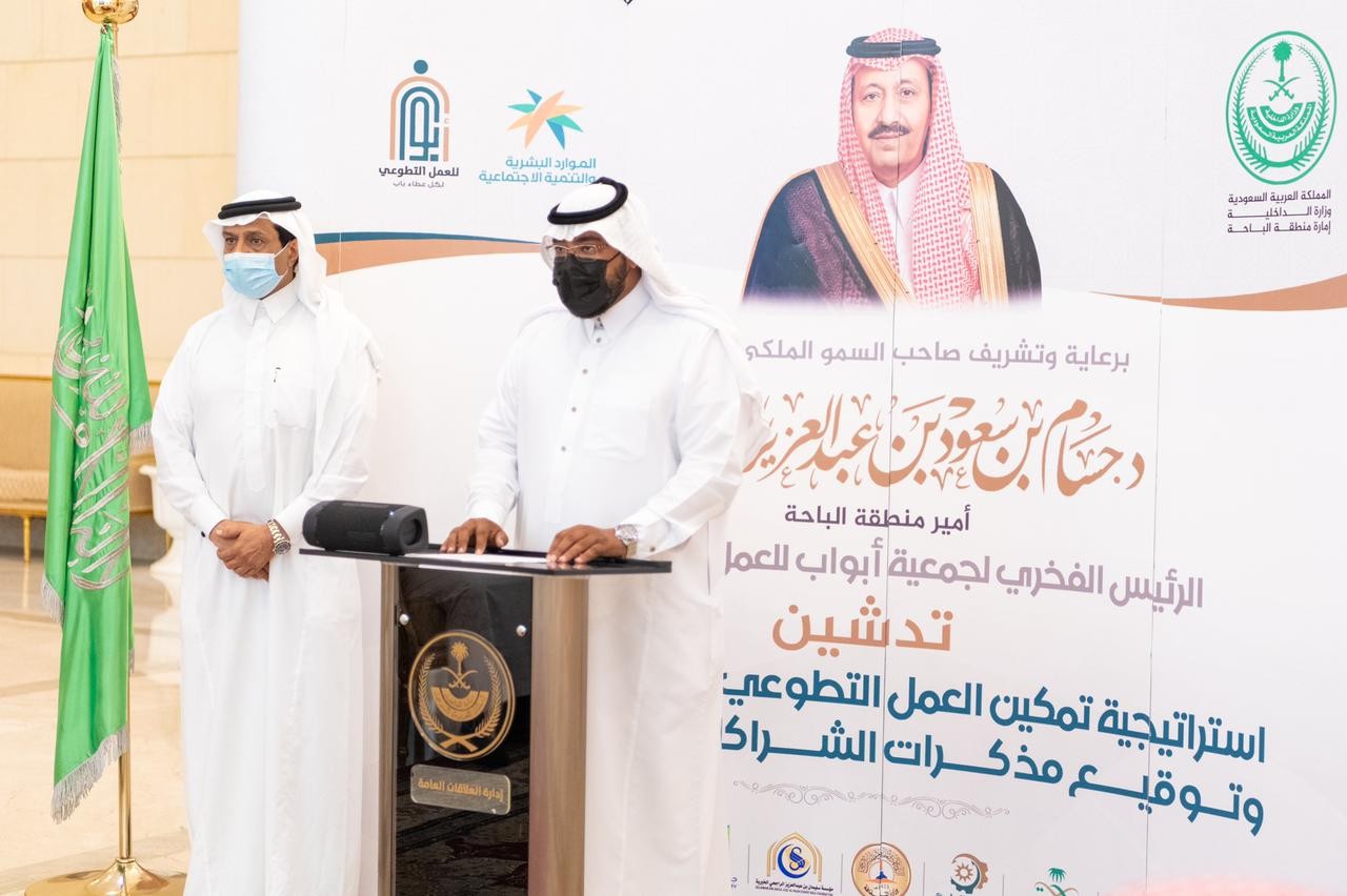 أمير منطقة الباحة يطلق استراتيجية تمكين العمل التطوعي لجمعية أبواب التطوعية