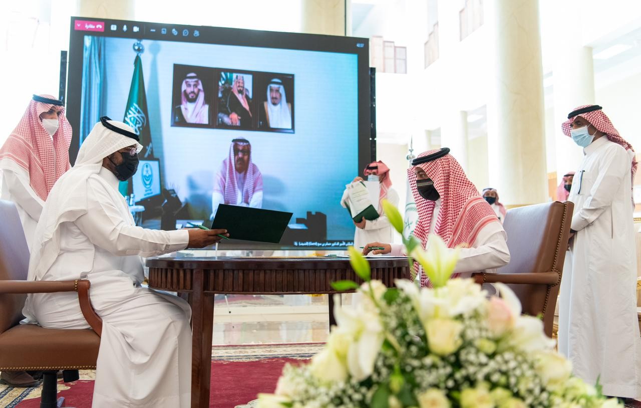 بعد ذلك رعى سمو امير المنطقة توقيع 8 مذكرات تفاهم وشراكات مجتمعية مع جامعة الباحة والادارة العامة للتعليم والشؤون الصحية والغرفة التجارية والنادي الادبي ومؤسسة سليمان الراجحي الخيرية ومؤسسة المجدوعي الخيرية ومجلس شباب المنطقة .
