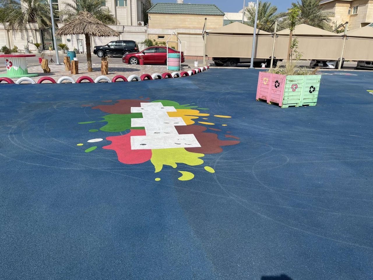 وأضاف المهندس سلطان الزايدي أن حديقة التدوير التي تم انشاؤها تأتي على مساحة تزيد عن 1800 متر مربع وتحتوي على ألعاب معاد تدويرها من اطارات السيارات وبعض الأجزاء الخشبية ومشايات من مخلفات الرخام والسيراميك وبعض الأحجار الموزعة لتشكل حديقة تكتمل فيها كل العناصر التي شكلت لوحة فنية بجمال محتوياتها وطريقة تصميمها، كما تحتوي على جلسات مظللة من بقايا سعف النخيل وطاولات خشبية، وحاويات تدوير " بلاستيك – زجاج – ورق " ، وأعمدة إنارة بالطاقة الشمسية، وزراعة أشجار بأحواض علب الدهانات والحاويات البلاستيكية وعربات اليد، وطاولة ألعاب تنس مصنوعة من بقايا حاوية، فيما تم استحداث أرضية من المطاط بمساحة 600م2 تحتوي على رسومات أرضية بأشكال تفاعلية.