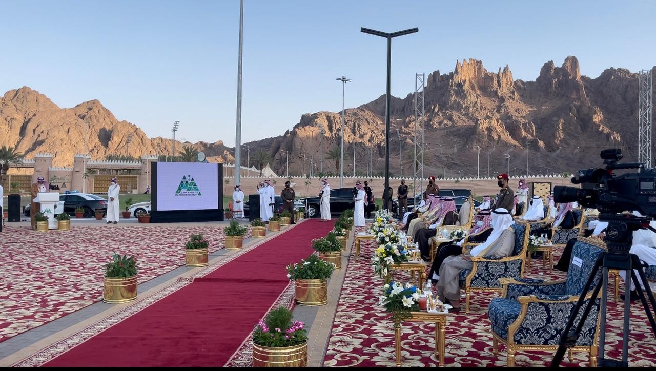 وبدأ الحفل الكريم بآيات من الذكر الحكيم تلي ذلك كلمة القاها سعادة أمين منطقة حائل المهندس إبراهيم بن سعيد أبو راس قدم بها شرحاً عن المشروع مفاده أنه نظراً لما تتميز به منطقة حائل من طبيعة جبلية خلابة لذلك تم اختيار موقع المشروع بمنطقة المغواة امتداداً لسلسلة جبال أجا وسط الطبيعة الساحرة حيث تبلغ مساحة منطقة  المشروع ما يقارب ثلاثة ملايين متر مربع  كواجهة ترفيهية لمدينة حائل فقد حرصت الامانة عند تصميم المشروع على حفظ الحقوق المجتمعية لكافة فئات المجتمع في ظل تواجد الأبعاد الاستثمارية للمشروع فقد تم إنشاء ممرات للمشاة بطول ٨ كم وكذلك إنشاء مسارات للدراجات بطول 4 كم وتخصيص ست مواقع للمقاهي لماركات عالمية ستطرح للاستثمار عبر بوابة الاستثمار البلدي (فرص) وتم توفير مسطحات خضراء بمساحة ١٠٠,٠٠٠ متر مربع وحديقة استثمارية بمساحة ٨٠٠,٠٠٠ متر مربع كما تم توسعة وتطوير الطريق الرئيسي بأكثر من ١٠٠ م مقسمة علي اربع مسارات رئيسية و مسارين للخدمة من طريق مشار حتى بوابة منتزه المغواة وذلك لتعزيز الطريق المؤدي للاحتفالات الرئيسية, ومن ناحية الأبعاد الاستثمارية للمشروع فقد صمم على ٦ قطاعات رئيسية استغلت مساحة كل قطاع لتكون مناطق مفتوحة بحيث لا يسمح بإقامة منشآت  أكثر من (٢٠-٣٠)% من الموقع و يكون الدخول في كافة أنحاء الواجهة مجاني و للعموم وتبقي التكاليف فقط على الخدمات التجارية, كما استغلت إمكانيات الموقع في توظيف العناصر وتكاملها وقد حددت القطاعات كالتالي:ـ
