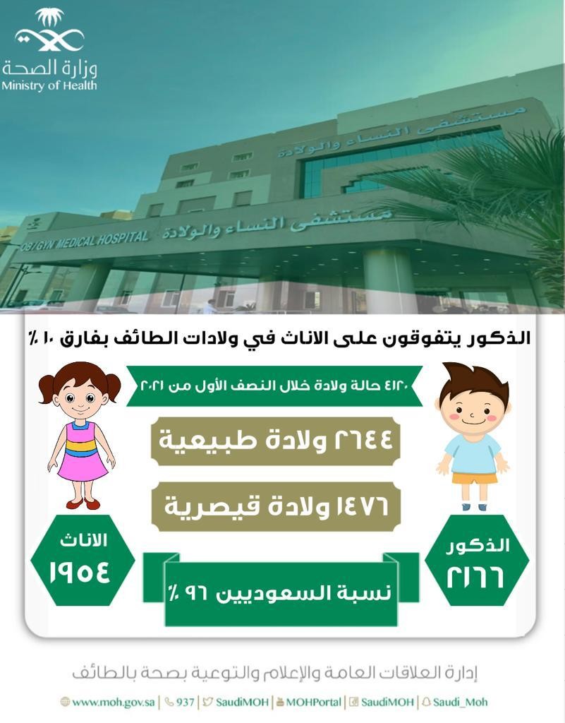 الذكور يتفوقون على الإناث في ولادات الطائف بفارق 10%