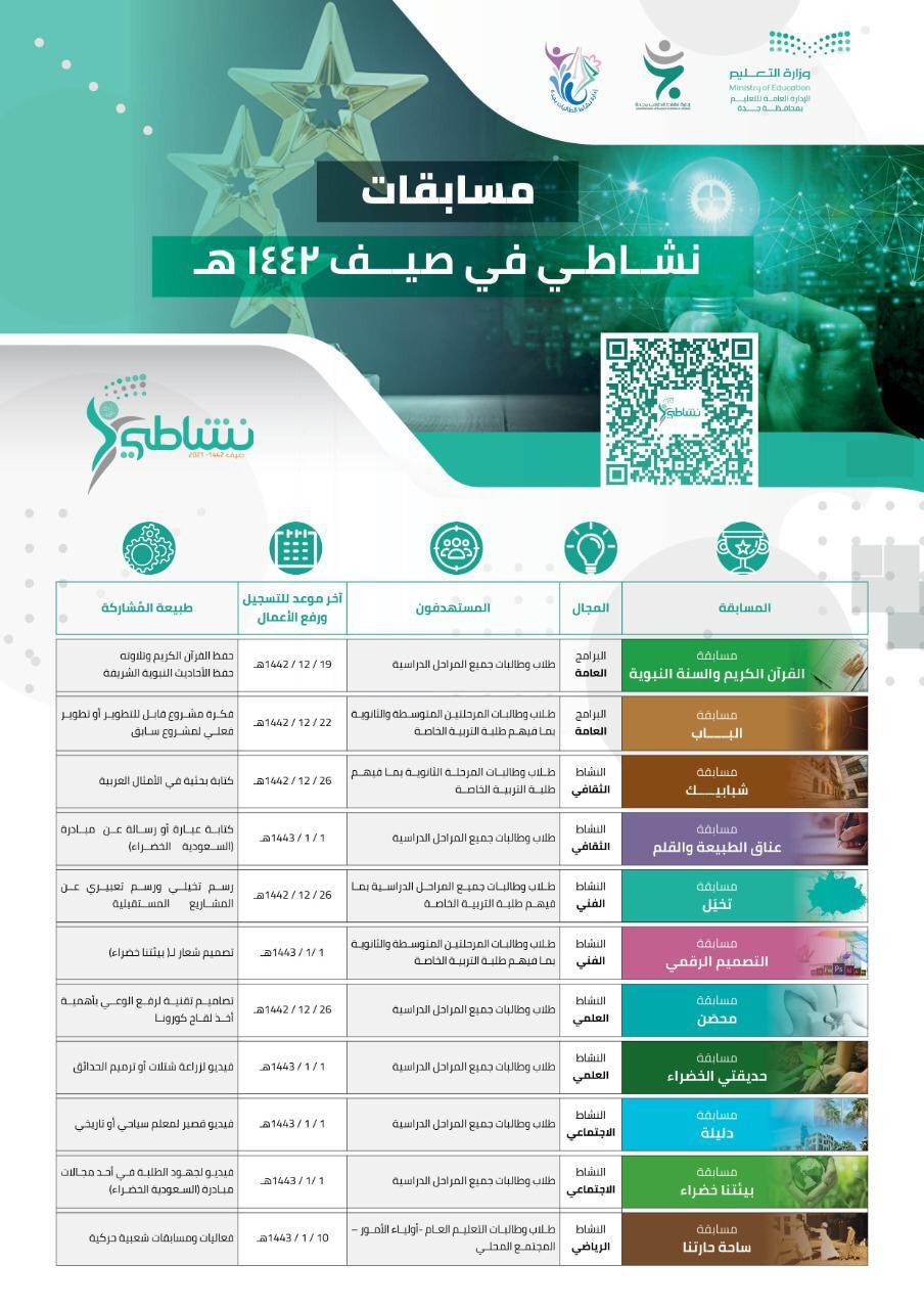 اقبال متزايد من طلاب وطالبات تعليم جدة للمشاركة في "نشاطي" الصيفي