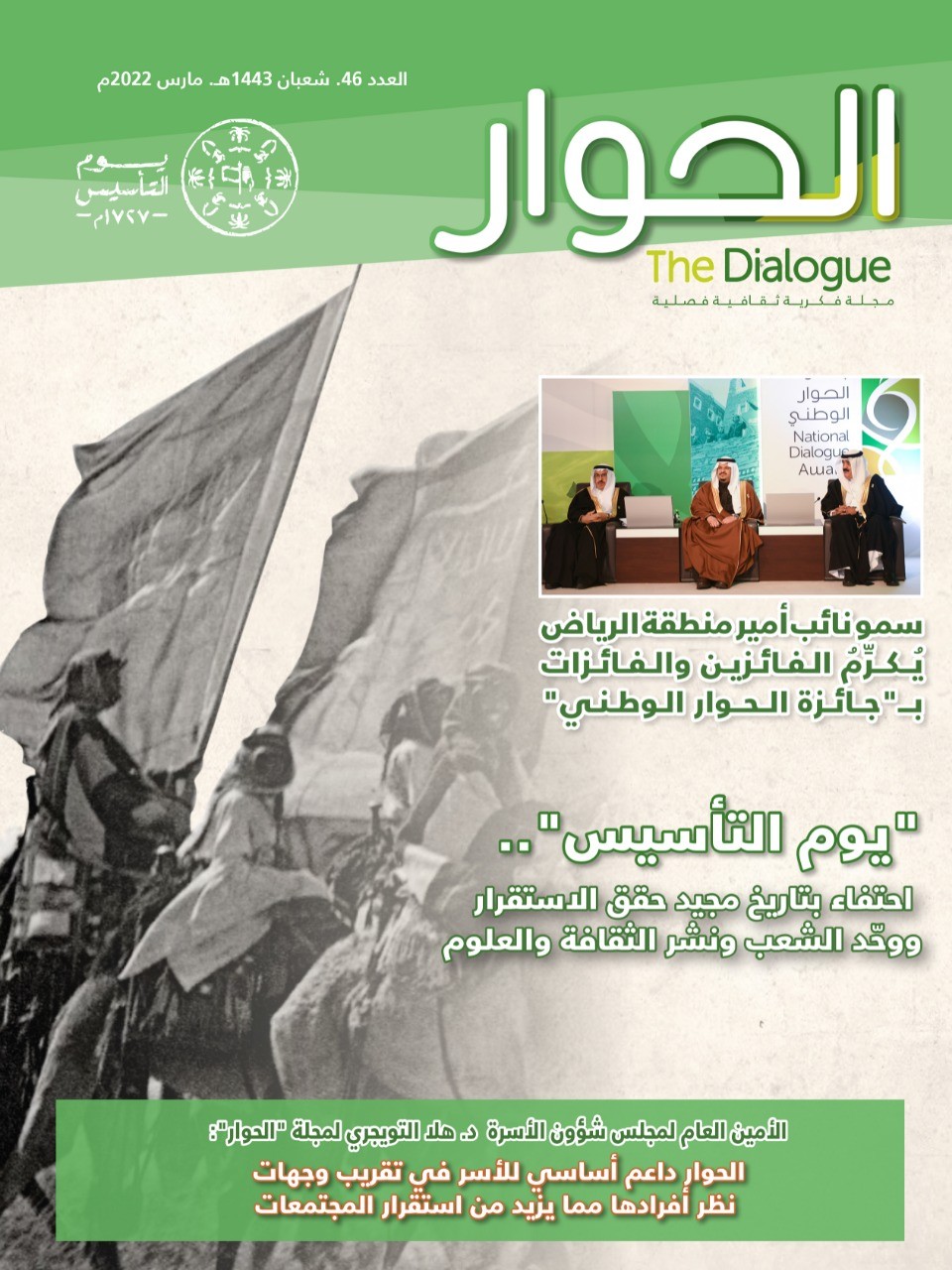 خصّصت مجلة الحوار التي يصدرها مركز الملك عبد العزيز للحوار الوطني عددها الجديد السادس والأربعين (46)، للاحتفاء بـ"يوم التأسيس" للمملكة العربية السعودية.