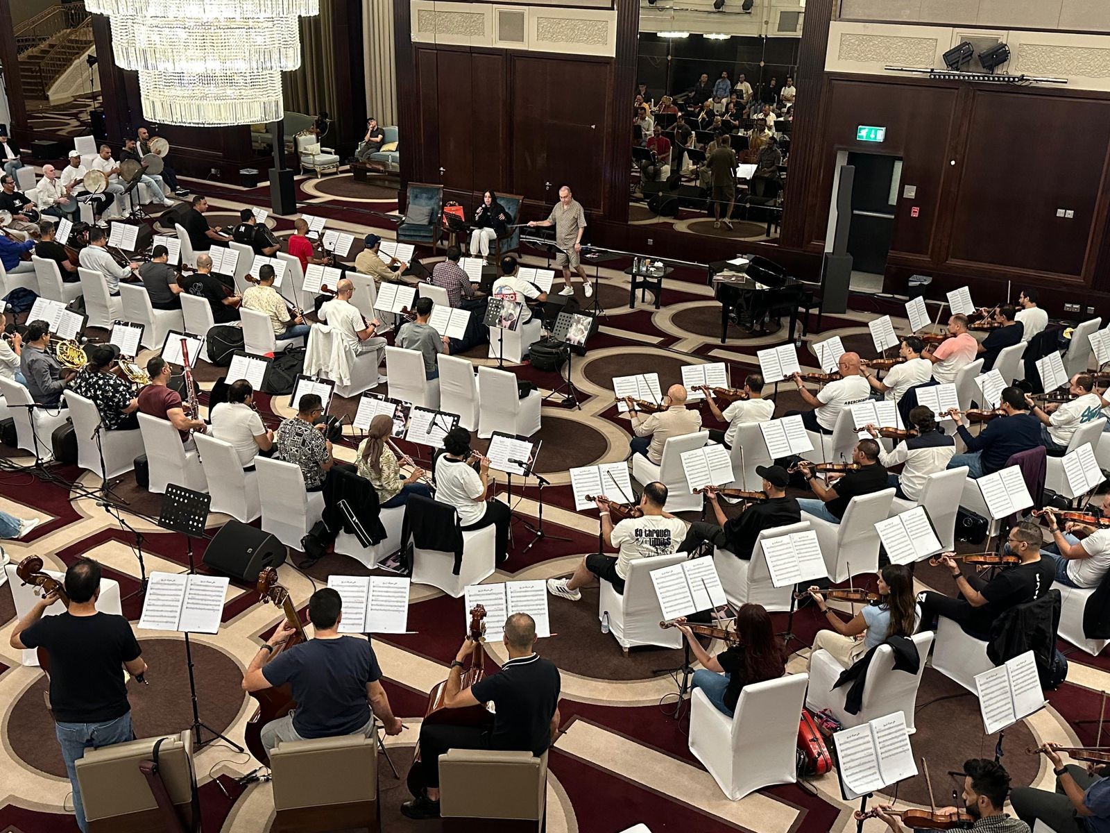 حيث بدأت أمس الاحد البروفات المكثفة لهذا الحفل المنتظر، و استمرت لأكثر من 8 ساعات شاركت فيها الأوركسترا الضخمة التي تضم أكثر من 150 عازف
