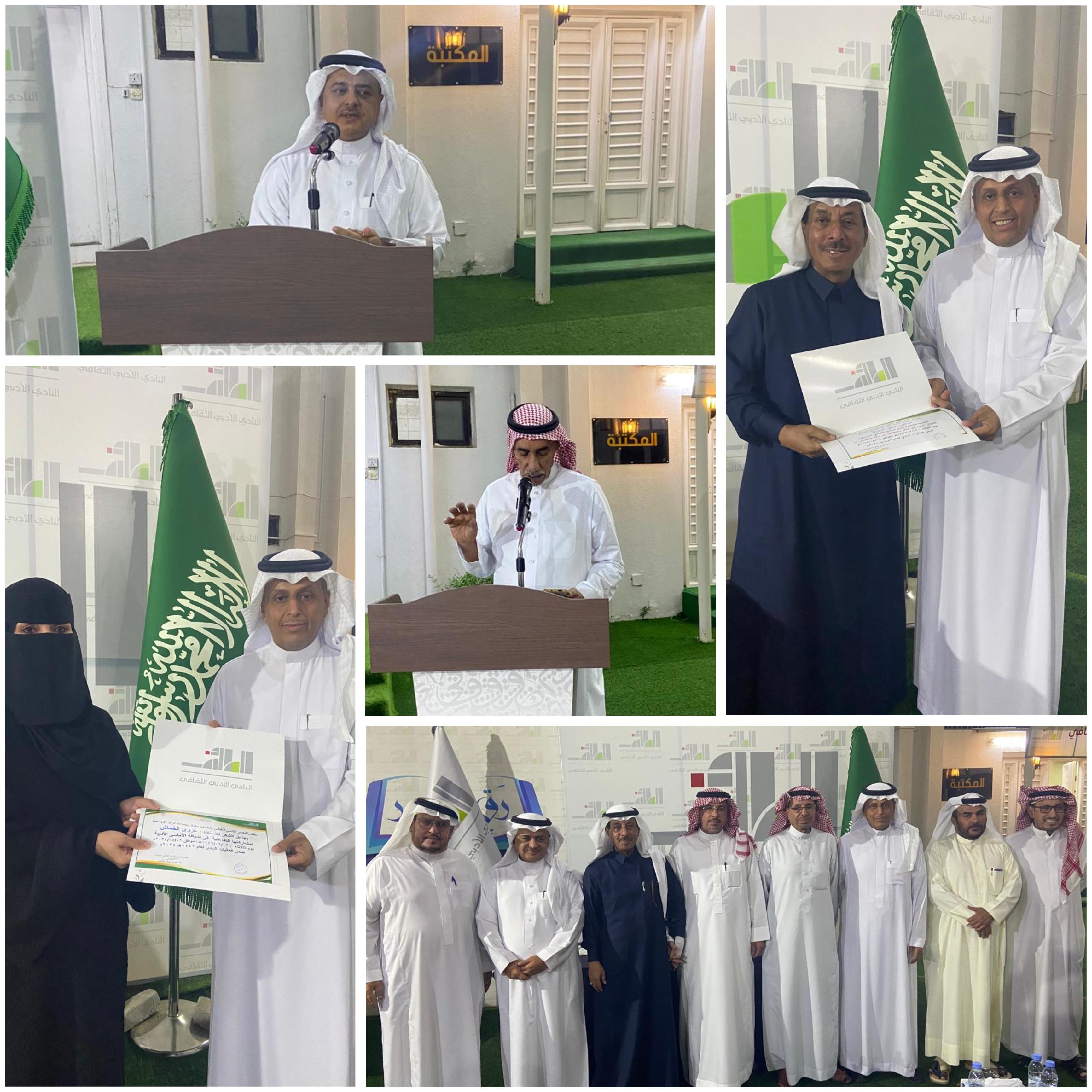 وختمت الأمسية بتكريم الدكتور عائض، والدكتور سلوم، ومطعم عشرة ونص الذي ساهم في تقديم الضيافة .