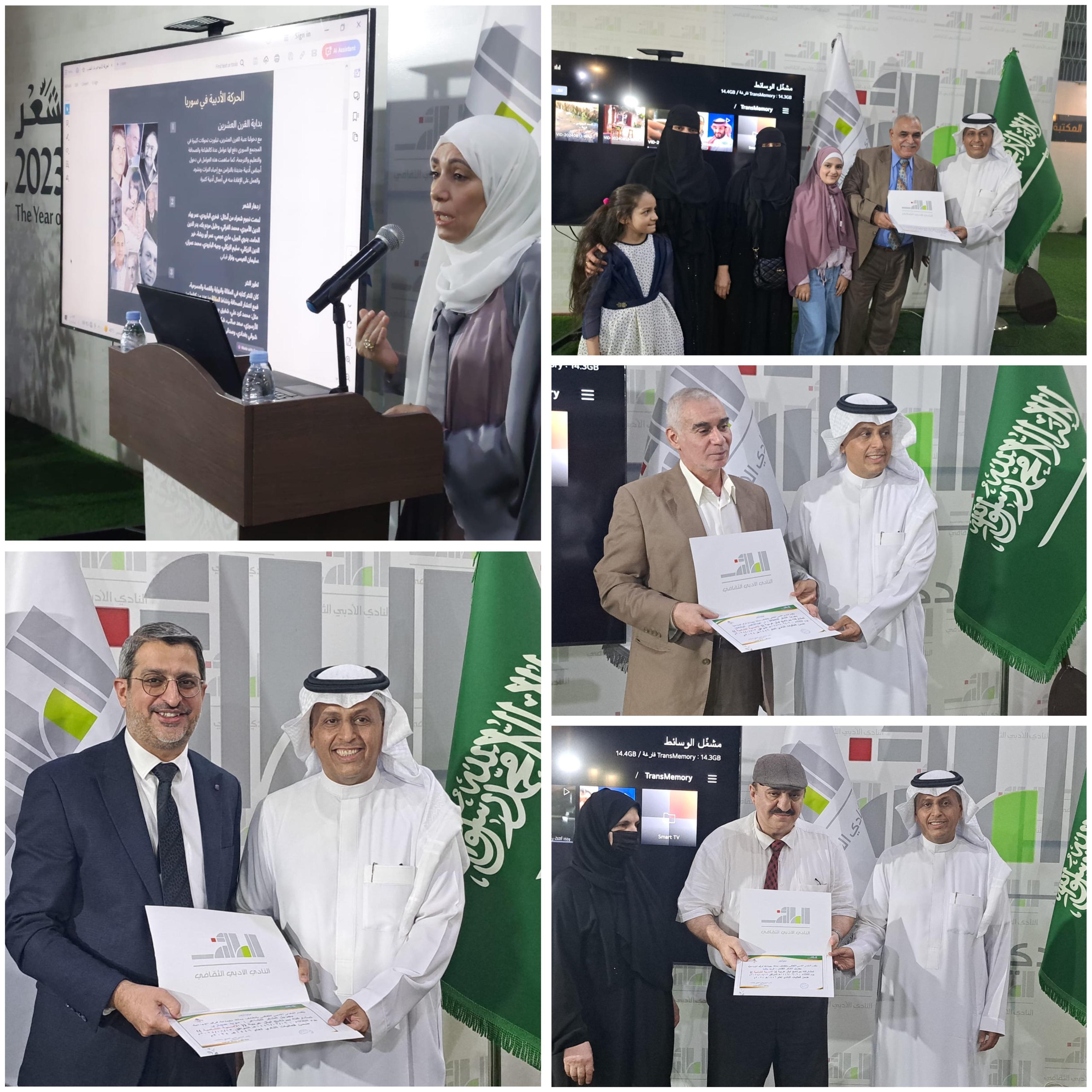 وقدمت الدكتورة فطيم دناور عرضا ثقافيا شمل جميع مجالات الأدب في بلاد الشام وأهم الأدباء والرواد وأهم المدارس الأدبية في سوريا ولبنان والأردن وفلسطين .