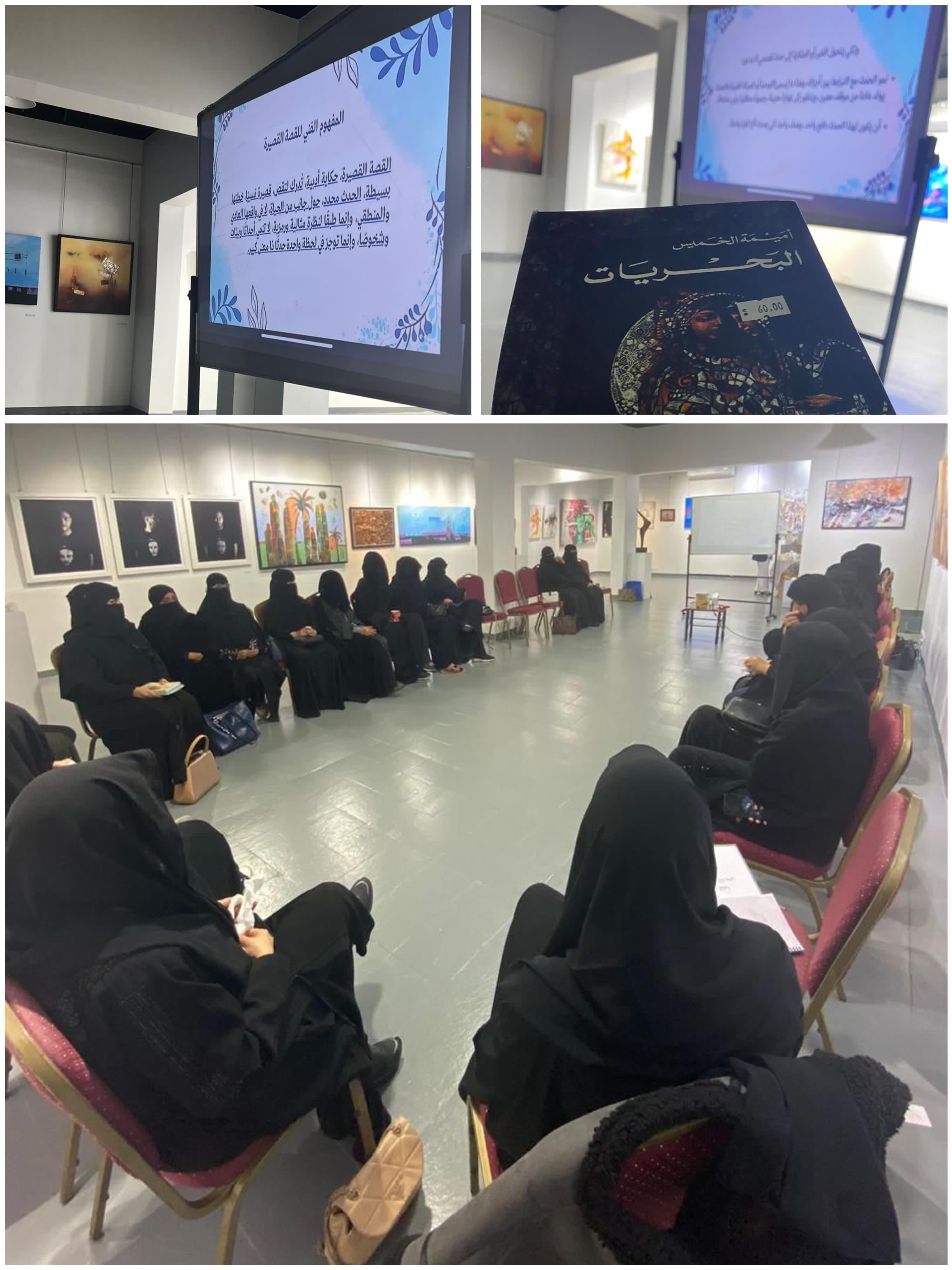 وفي الورشة الثانية تم التعريف بالمفهوم الفني للقصة القصيرة، وأشهر روادها وكتابها عالميًا وعربيًا، مع التوقف أمام رواد وكتاب هذا الفن في أدبنا السعودي، وأشهر أعمالهم القصصية، مع وقفة مطولة للتعريف بعناصر القصة القصيرة، وأهم التقنيات الفنية المطلوبة لبناء هذا الفن بناءً فنيًا جماليًا محكمًا.
