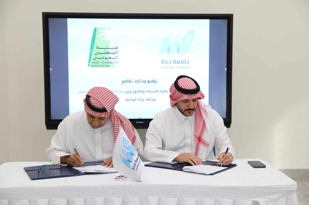 وقع فرع هيئة الصحفيين السعوديين بمنطقة مكة المكرمة و جامعة جدة ممثلةً بعمادة الشريعة والقانون مذكرة تفاهم وتتعاون بهدف تقديم الاستشارات القانونية وتنفيذ الفعاليات والدورات التدريبية الإعلامية المشتركة.
