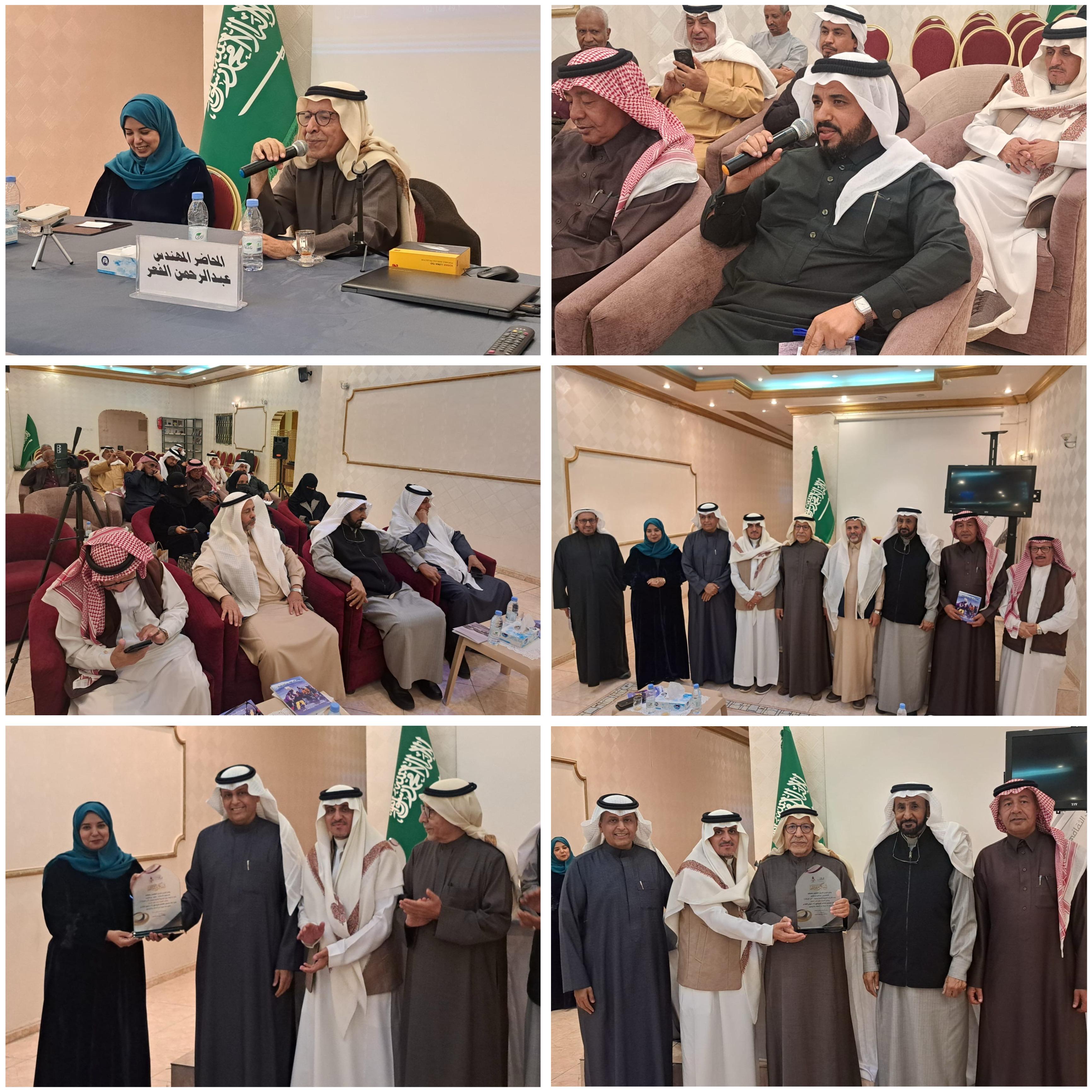 عبد الرحمن بن فهيد الفعر عرضاً لرحلته إلى قمة جبل كيليمانجارو بقارة إفريقيا ، و الذي قام بتأليف كتاب عن هذه الرحلة بعنوان ( الوصول إلى قمة جبل كيليمانجارو " تم توزيع نسخاً منه على الحضور واصفاً هذه الرحلة بما فيها من مغامرات وصعوبات مدعماً ذلك بعرض مرئي يبين تفاصيل الرحلة، وفي نهاية المحاضرة قامت مديرة اللقاء الأستاذة عهود القرشي بفتح الباب لمداخلات الحضور حيث تداخل