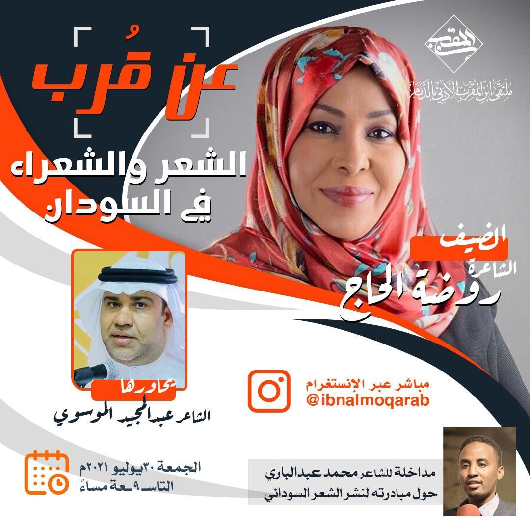استضاف ملتقى ابن المقرب على منصته على الإنستغرام مساء الجمعة الماضي، الشاعرة العربية الكبيرة روضة الحاج في أمسية شعرية وحوار حول الشعر والشعراء في السودان.