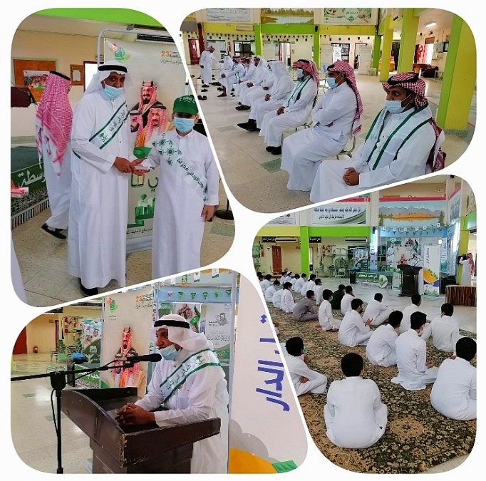 وقد كان هذا الإحتفاء بحضور جميع الكادر الإداري والتعليمي، مع الأخذ بالتدابير والاحترازات الصحية، وفي الختام تم تكريم المشاركين في المناسبة، لينتهي الحفل بالنشيد الوطني السعودي .