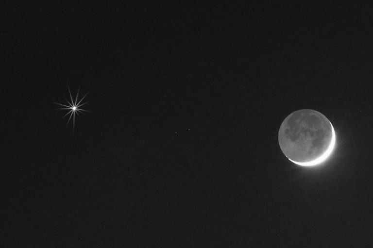 القمر والزهرة يقعان في الترتيب الثاني والثالث للامع الأجسام السماوية على التوالي بعد الشمس، لذلك يمكن رؤيتهما قبل حلول ظلمة الليل في منظر جميل.
