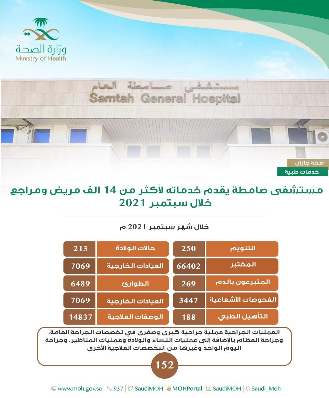مستشفى صامطة العام يقدم خدماته لأكثر من "14 " ألف مريض و مراجع خلال سبتمبر