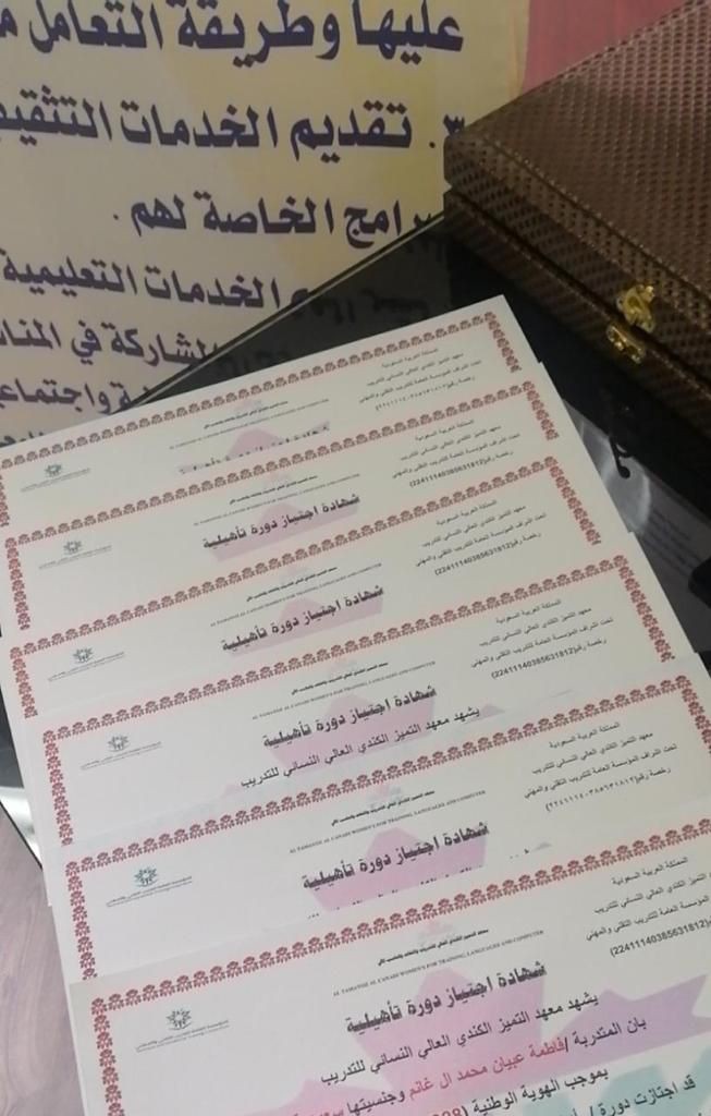 وزيادة على دورات الحاسب الآلي قدم المعهد دورات إدارية كدعم إضافي مع الدورة لتشمل مستفيديات الجمعية بكل الفئات من الحركي والسمعي والمكفوفين وايضاً بعض الفئات التي تتمكن من الاستفادة من الدورة تم شملهم بها .