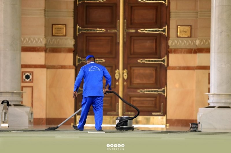 كما تم العمل على غسل 1654 سجادة حرصًا على اتخاذ الإجراءات الاحترازية كافة. وتم رش المعطر على السجاد في الحرم القديم (الروضة الشريفة) أكثر من 480 مرة بكمية تجاوزت 1500 لتر، وفي التوسعات والساحات قرابة 600 مرة باستخدام 3100 لتر من المعطر.