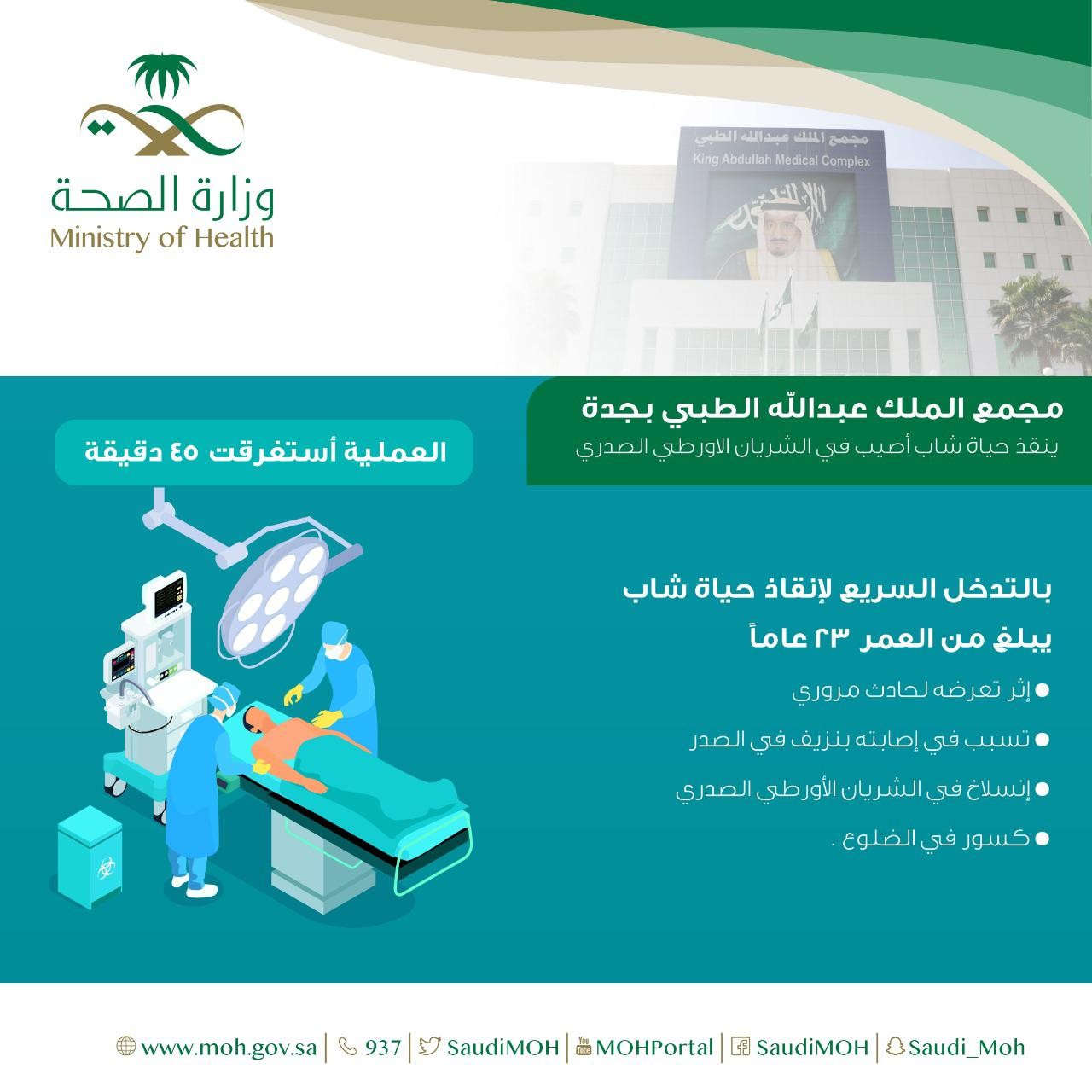 مجمع الملك عبدالله الطبي في جدة ينقذ حياة شاب أصيب في الشريان الاورطي الصدري