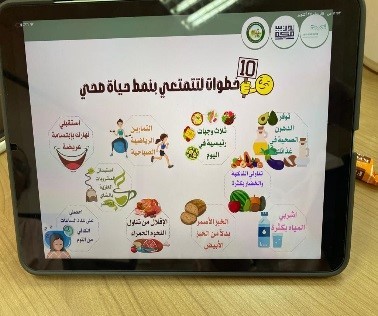 وتناول محاور متعددة منها: التعريف بماهية الصحة، ورفع الوعي الصحي بمفاتيح الصحة الدائمة، شرح الخطوات الأساسية للتمتع بنمط حياة صحي، توضيح إرشادات الحمية الناجحة، وجداول البدائل الغذائية، وأهمية التغذية السليمة، وكيفية احتساب السعرات الحرارية، وعرض جدول البدائل الغذائية.