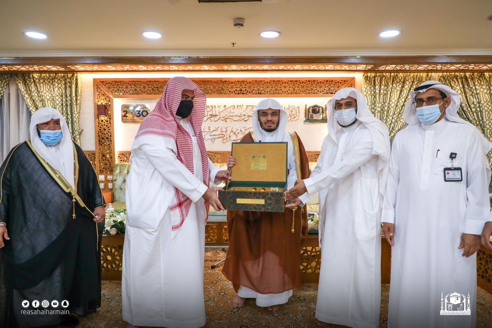 وكرمت وكالة الشؤون التوجيهية والإرشادية إمام المسجد الحرام الشيخ الدكتور ياسر الدوسري تقديراً لجهوده ومشاركته في اللقاءات العلمية بالرئاسة العامة لشؤون المسجد الحرام والمسجد النبوي.