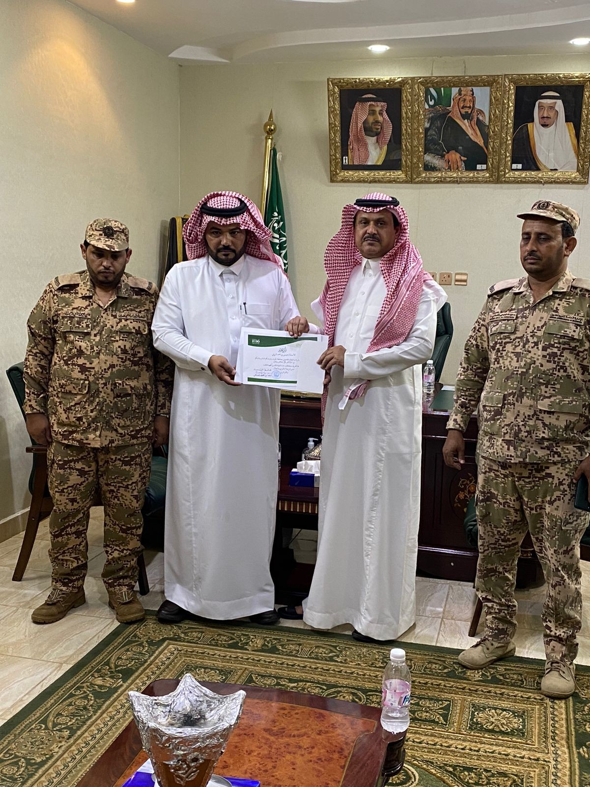 كرم سعادة محافظ الحرث الاستاذ مقعد بن محمد السبيعي رئيس قطاع المجاهدين بالحرث على ما قام به من مجهودات في اليوم الوطني ٩١ ومتابعة سير عمل دوريات المجاهدين في حدود محافظة الحرث واخلاصه وتفانيه مع بقية زملائه بالقطاعات الأمنية الاخرى بالمحافظة بما يخدم المصلحه العامة .