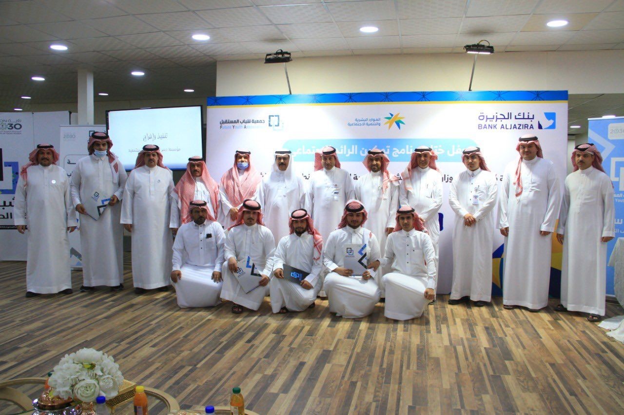 برعاية مدير عام فرع وزارة الموارد البشرية والتنمية الاجتماعية بمنطقة الحدود الشمالية بالنيابة أ/ مقبل بن مطيلق العنزي اختتمت اليوم فعاليات برنامج تمكين الرائد الاجتماعي بجمعية شباب المستقبل بحضور النائب الأول للرئيس التنفيذي ورئيس مجموعة الشريعة والمسؤولية الاجتماعية
