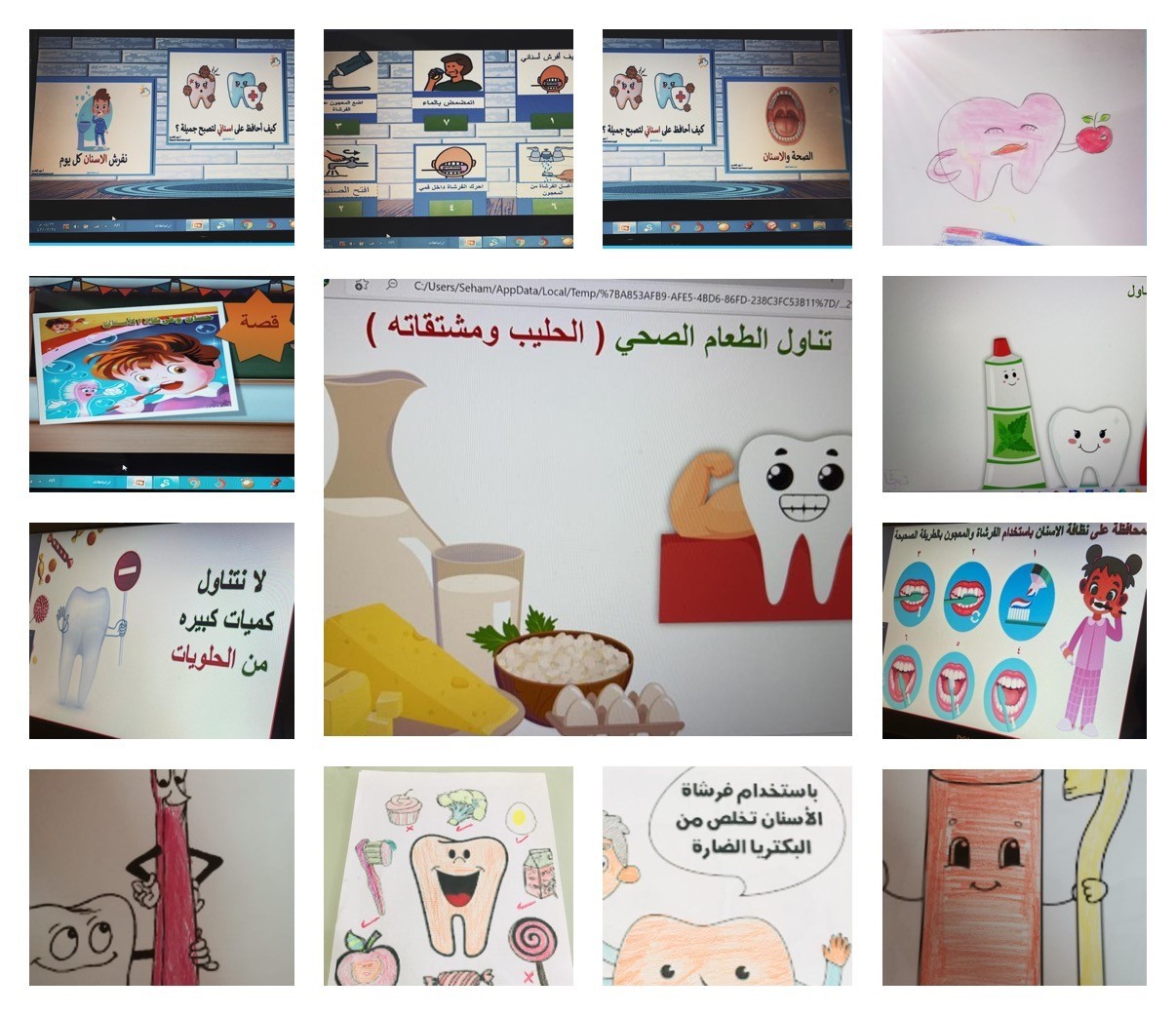 عبر منصة روضتي نفذت روضتي البراءة والتاسعة ممثلةً بإدارة الطفولة المبكرة يوم الثلاثاء الموافق  4 / 4 / 1443هـ، تفعيلاً لأسبوع صحة الفم والأسنان من قبل الموجهات الصحيات بالروضات والمعلمات مستهدفاً الأطفال والأمهات وذلك بهدف نشر الوعي والممارسات الصحية السليمة المتعلقة بصحة الفم والأسنان، مع تعزيز أهمية نظافة الفم والأسنان للأطفال، كما تمت التوعية بطرق الوقاية من التسوس، وتعريف المجتمع المدرسي بالأطعمة المفيدة لصحة الفم والأسنان، مع توضيح طريقة تنظيف الأسنان بشكل صحيح.