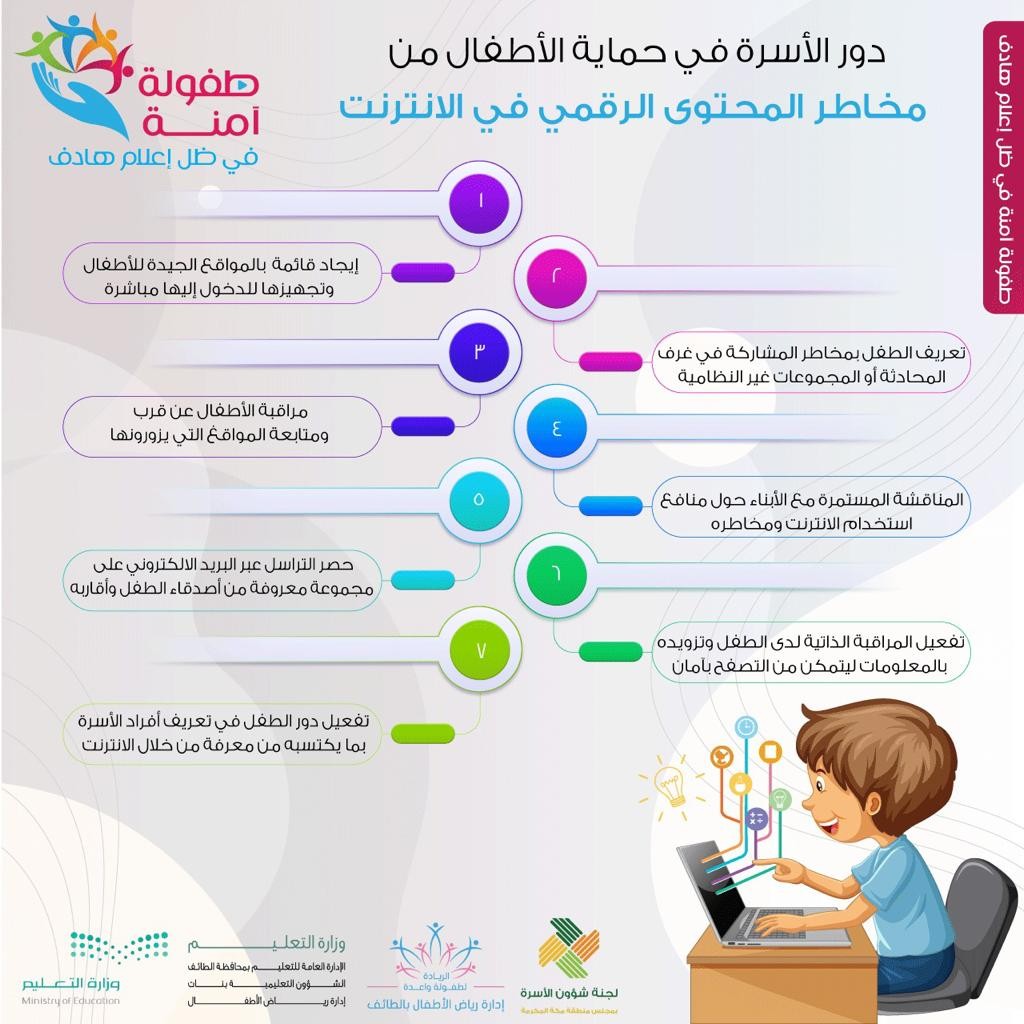 وجهت لجنة شؤون الأسرة بمنطقة مكة المكرمة أسر الأطفال وأولياء أمورهم إلى واقع برامج الأطفال ومدى تأثيرها عليهم، ومخاطر المحتوى الرقمي والسموم التي تبث من خلاله، وذلك خلال الحملة الإلكترونية التي أطلقها فريق الطفل بلجنة شؤون الأسرة تزامنًا مع اليوم العالمي للطفل تحت عنوان "طفولة آمنة في ظل إعلام هادف".