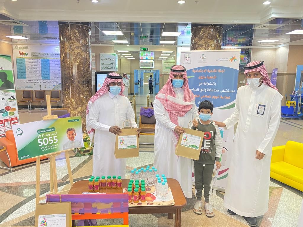 نظم فرع الجمعية الخيرية لرعاية الأيتام “إنسان”، في محافظة وادي الدواسر، اليوم إحتفائية خاصة للأطفال المنومين بالمستشفى العام بالمحافظة ، بمناسبة اليوم العالمي للطفل والذي كان موضوعه هذا العام "مستقبل أفضل لكل طفل " ، وذلك بالتعاون مع إدارة المستشفى ولجنة التنمية الاجتماعية الأهلية في نزوى.