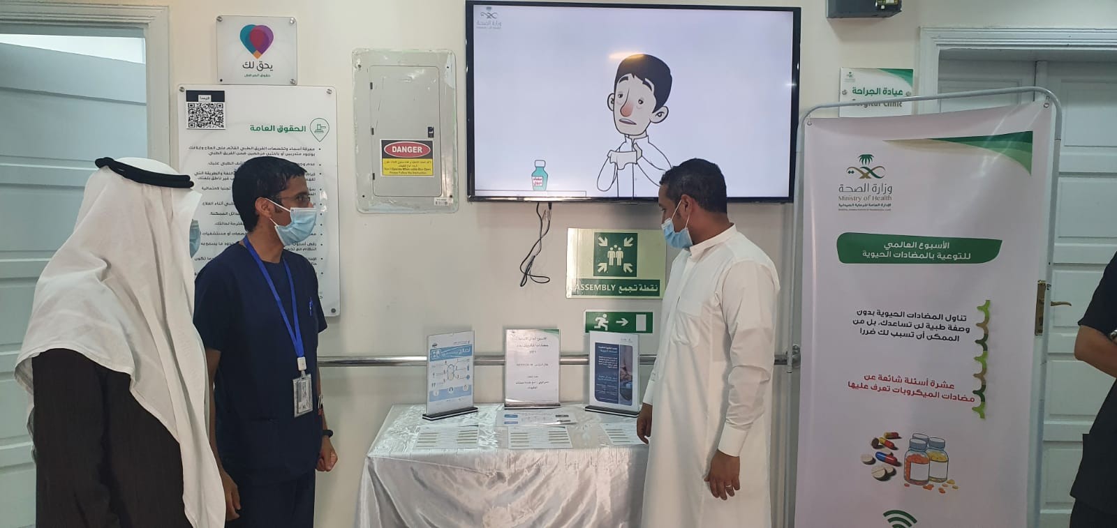 واشتملت الفعاليات على معرض توعوي وعروض مرئية قُدمت من خلالها عدد من الرسائل التوعوية عن المضادات الحيوية.