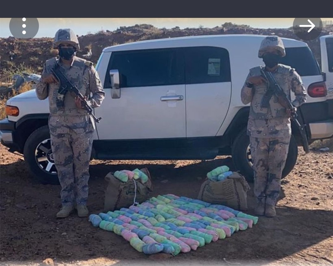صرَّح المتحدث الرسمي لحرس الحدود العقيد مسفر بن غنّام القريني، بأن الدوريات البرية في منطقة نجران تمكنت من إحباط محاولات تهريب نحو (117) كيلو جرامًا من مادة الحشيش المخدر، كما تمكنت الدوريات البرية في منطقة عسير من إحباط (1992) كيلوجرامًا من مادة القات المخدر، والقبض على المتورطين فيها، وهم (4) متهمين، مواطن، و (3) مخالفين لنظام أمن الحدود من الجنسيات اليمنية والإثيوبية والصومالية.