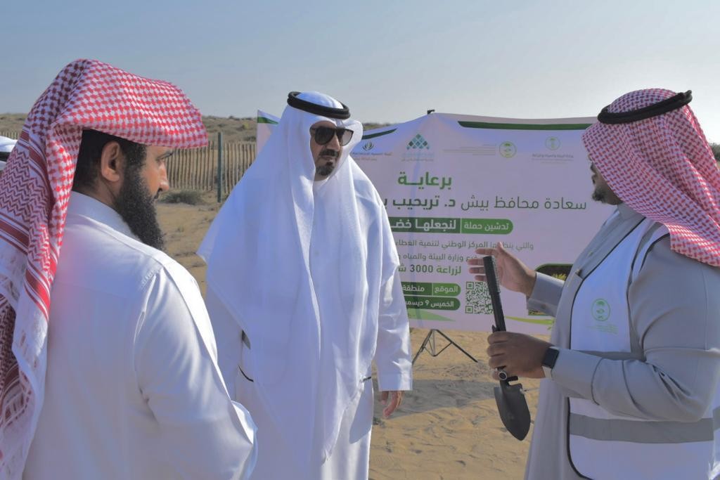 دشَّن محافظ بـيـش د. تريحيب بن عماش ال حفيظ صباح اليوم الخميس ، حملة التشجير"لنجعلها خضراء ٢٠٢١م"، بحضور عدد من مديري الإدارات الحكومية.