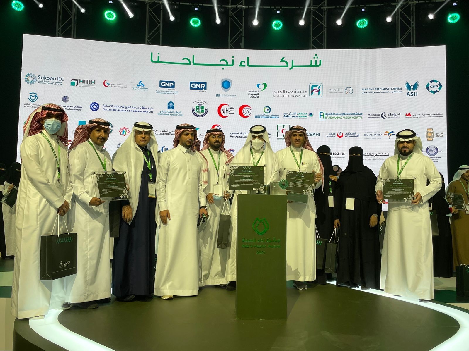 حيث حصل مستشفى الملك عبدالعزيز التخصصي على جائزة اداء الصحة في مسار الاستجابة لكوفيد 19فرع المستشفيات .