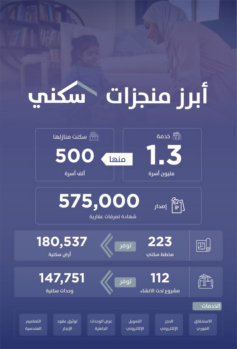 وعمل "سكني" على توفير مجموعة من الخدمات والحلول السكنية بالشراكة مع القطاع الخاص من المطورين والجهات التمويلية من البنوك.