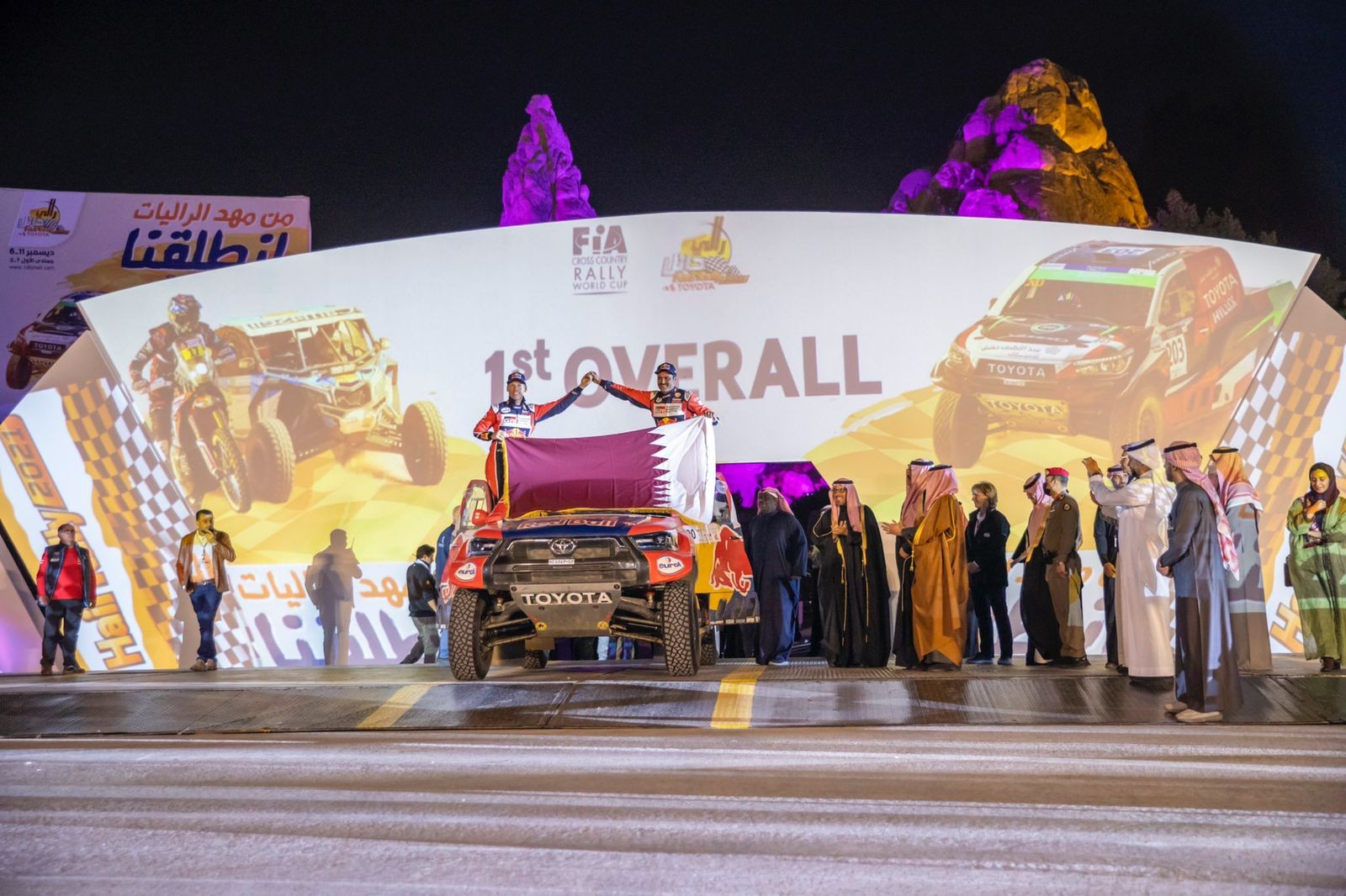 توج صاحب السمو الملكي الأمير عبدالعزيز بن سعد بن عبدالعزيز أمير منطقة حائل رئيس هيئة تطوير المنطقة، القطري ناصر العطية بلقب رالي حائل تويوتا الدولي 2021 ولقبه الخامس في كأس العالم للراليات الصحراوية الطويلة من الاتحاد الدولي للسيارات "فيا- كروس كنتري"، وجميع أبطال مختلف السباقات، وذلك في منتزه المغواة للاحتفالات، بحضور صاحب السمو الملكي الأمير خالد بن سلطان الفيصل رئيس الاتحاد السعودي للسيارات والدراجات النارية، وصاحب السمو الملكي نائب أمير منطقة حائل الأمير فيصل بن فهد بن مقرن، وعددا من مدراء الإدارات الحكومية والضيوف.