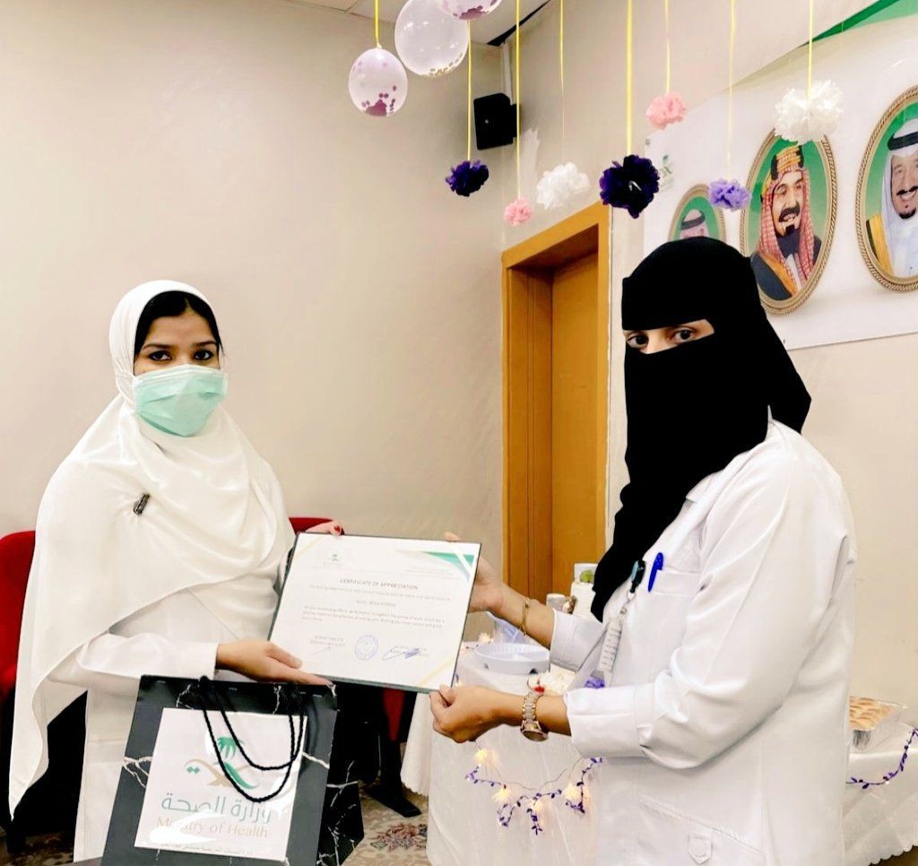 أقام مستشفى فيفاء العام ممثلة بادارة خدمات التمريضية حفل توديع وتكريم للممرضة / Athira Krishnan المنتهي عقدها مع الوزارة.