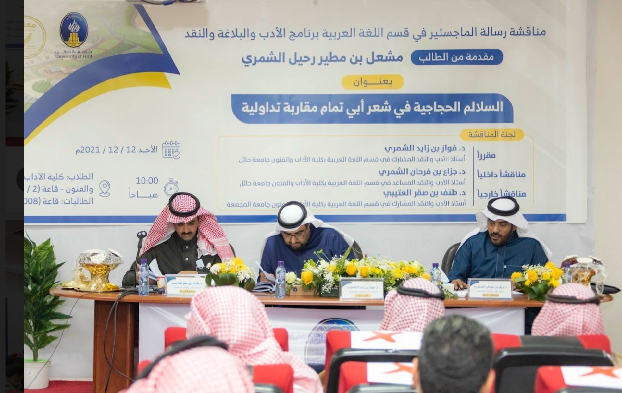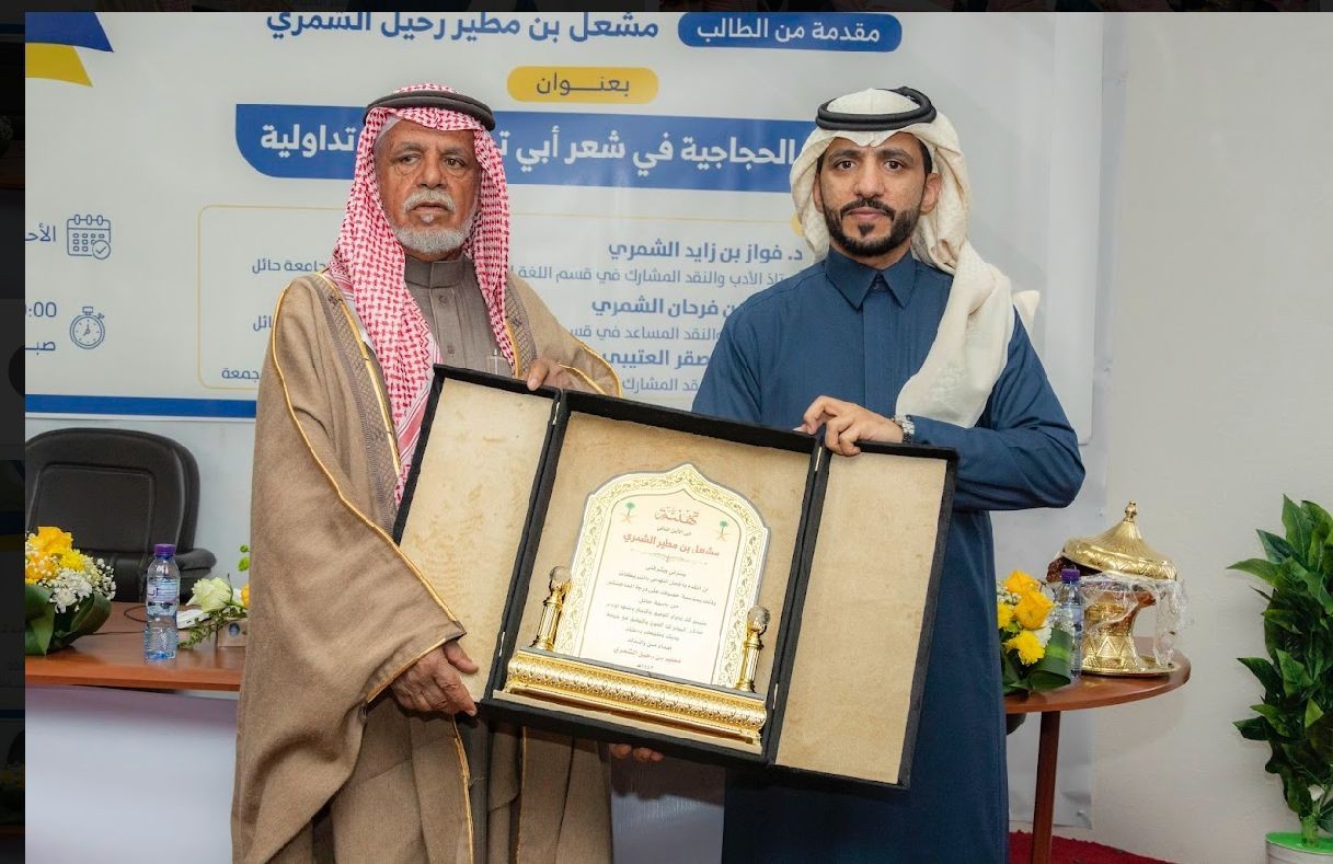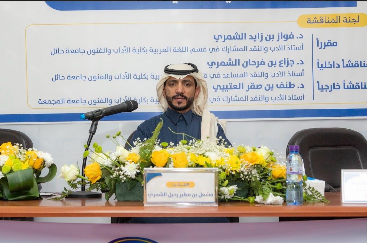 حصل الأستاذ مشعل بن مطير الشمري على درجة الماجستير من جامعة حائل في تخصص (اللغة العربية برنامج الأدب والبلاغة والأدب ) بتقدير ممتاز مع مرتبة الشرف الأولى ، ويعد “الشمري” من الكفاءات القيادية الشابة المميزة.