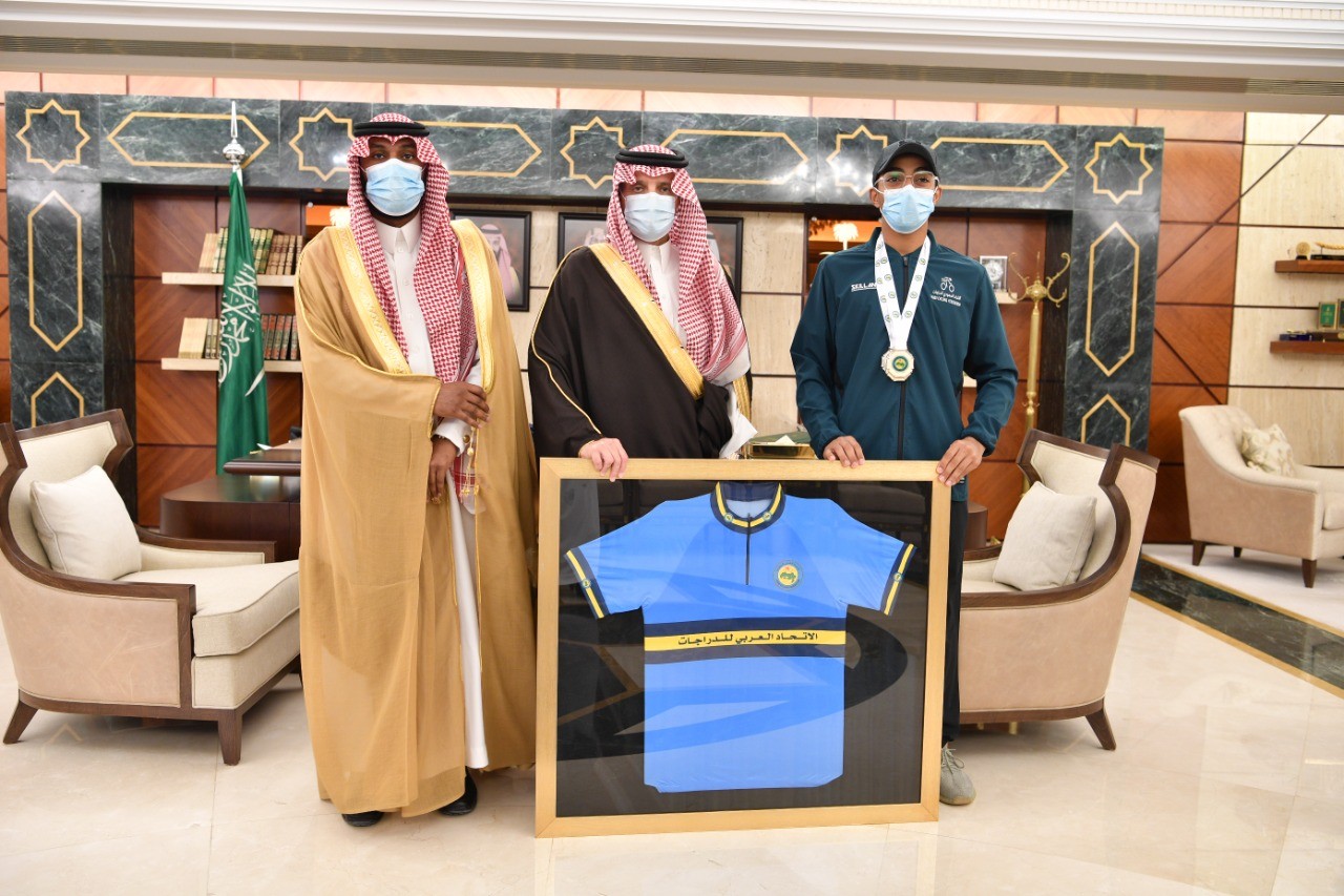 جاء ذلك خلال استقبال سموه بمكتب بديوان الإمارة اليوم الإثنين اللاعب عبدالعزيز بن سعود الدريعي الذي حصل على ثلاث ميداليات ذهبية ولقب بطل العرب، وتسجيله لرقم قياسي جديد في منافسات دراجات المضمار التي أقيمت في جمهورية مصر العربية.