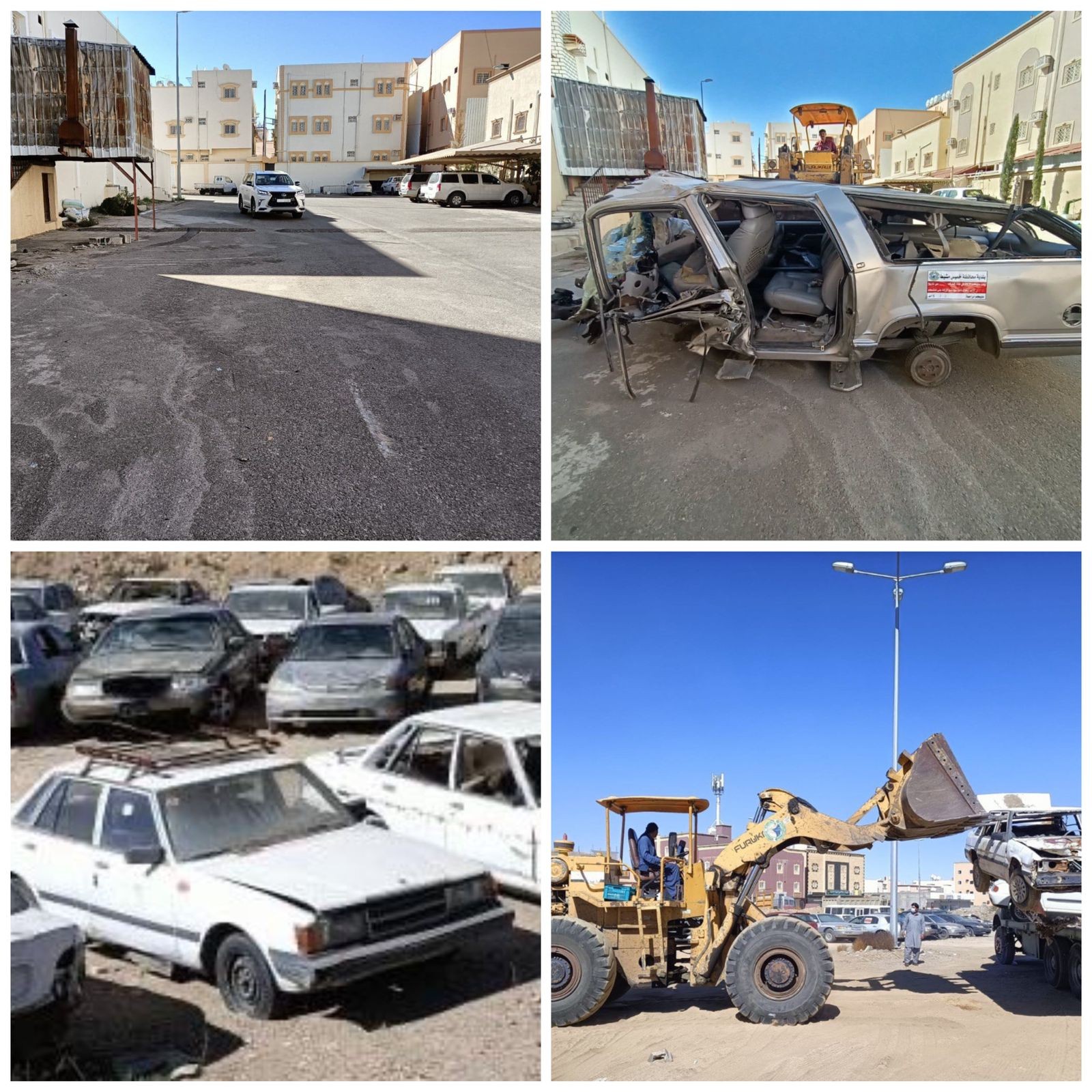 ضمن جهود البلدية و أعمالها الميدانية في حصر و رفع السيارات التالفة و المهملة من شوارع و أحياء المحافظة أوضح سعادة رئيس البلدية المهندس محمد بن ناجم الحويطي أنه تم رفع وإزالة أكثر من 430 سيارة تالفة من شوارع وأحياء المحافظة ونقلها إلي حجز البلدية وذلك من خلال آلية نظامية تبدأ بوضع إشعار يلصق علي السيارة من قبل مراقبي البلدية وذلك بتعاون الجهات الحكومية ذات العلاقة.