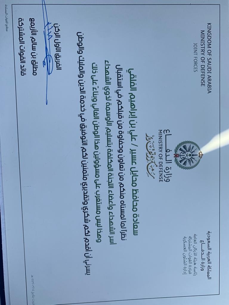 سلم صاحب السمو الملكي الأمير تركي بن طلال أمير منطقة عسير اليوم خطاب شكر لمحافظ محايل علي بن إبراهيم الفلقي من قائد القوات المشتركة الفريق أول ركن مطلق بن سالم الأزيمع نظير ماقام به الفلقي من مسانده وتعاون في استقبال أسر الشهداء وأعضاء اللجنة المكلفة بتسليم الأوسمة لذوي الشهداء وهذا ليس بغريب على مسؤولين هذا الوطن الغالي مقدماً شكره ومتمنياً له التوفيق في خدمة الدين والمليك والوطن.