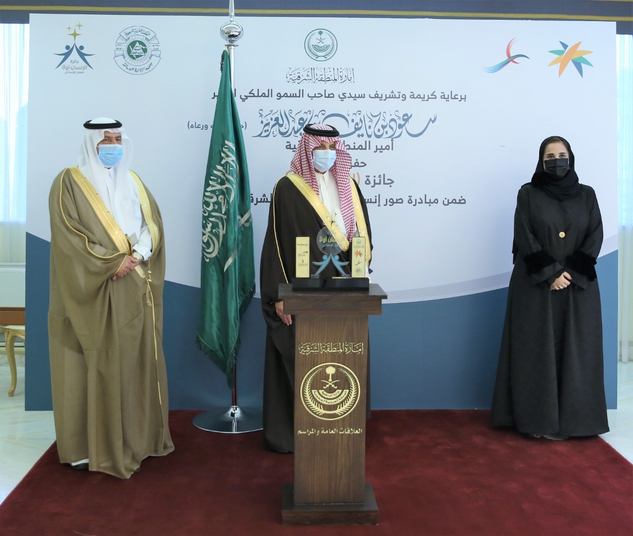 ورفع المقبل شكره لسمو أمير المنطقة الشرقية على دعمه ومتابعته لهذه الجائزة وحرص سموه على تكريم الاعمال الانسانية المتميزة في المنطقة.