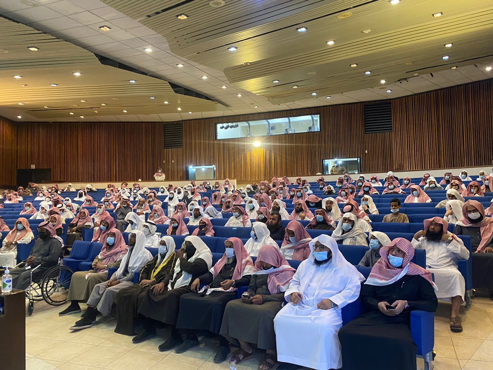 جاء ذلك خلال المحاضرة التي ألقاها مساء اليوم بحضور جمع غفير من الأئمة والخطباء والدعاة بقاعة المحاضرات بمقر فرع الشؤون الإسلامية بمنطقة الرياض وتم نقلها  عبر برنامج " الزوم " ضمن   فعاليات " مبادرة الانتماء الوطني مسئولية وأمانة التي ينظمها معهد الأئمة والخطباء وافتتحها معالي الوزير الشيخ الدكتور عبداللطيف بن عبدالعزيز آل الشيخ،صباح اليوم، وتستمر ليومين وتستهدف منسوبي المساجد بعموم مناطق بالمملكة.