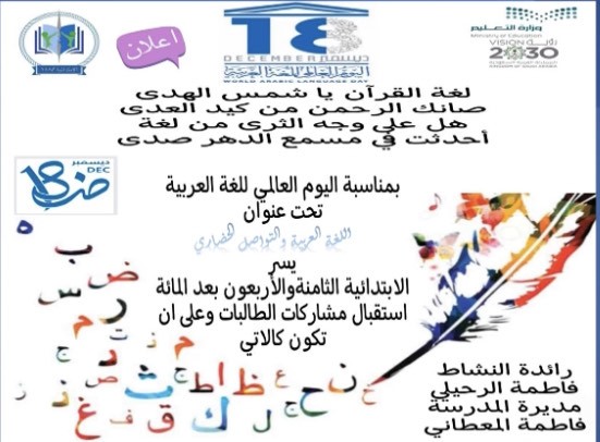 الابتدائية الثامنة والأربعون بعد المائة تحتفي باليوم العالمي للغة العربية
