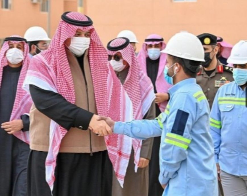 واطلع سموه على الخطوات الإنتاجية ومكونات المشروع، وعلى المنطقة الخدمية، مستمعاً لنبذة عن دور الشركة الاقتصادي والتنموي والاجتماعي، ودورها في التنمية البشرية ودعمها لبرامج التوطين.