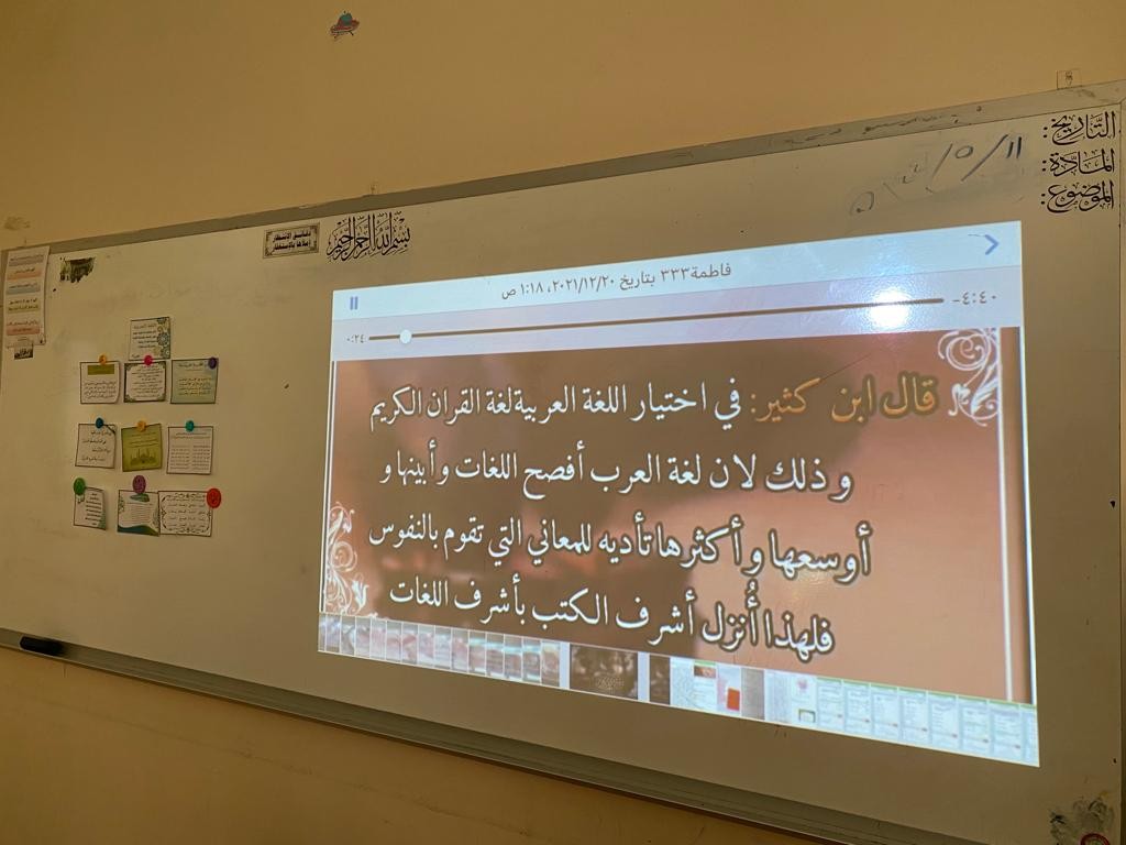 في حين فعلته معلمات اللغة العربية بالثانوية الثامنة بمتابعة القائدة / فاطمة الشريف من خلال توضيح أهمية اللغة العربية، وعرض تقديمي عن أهم غرائب وعجائب عن اللغة العربية.