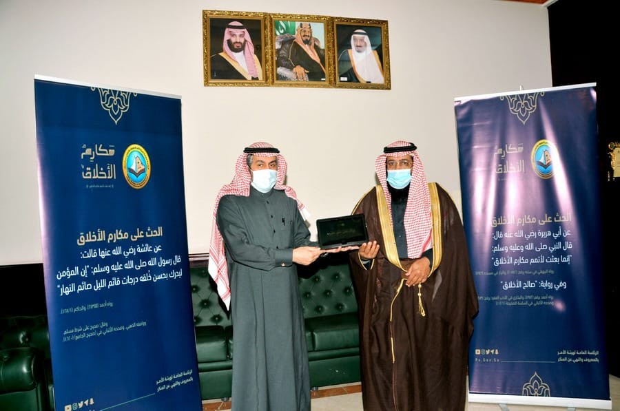 واستمع سعادته لشرح عن الحملة وأهدافها من فضيلة رئيس هيئة الأمر بالمعروف والنهي عن المنكر بمحافظة القريات الشيخ عبدالله بن رحيل العازمي ، والتي تشتمل على العديد من البرامج التوعوية التي تُعنى بالتوعية بأهمية مكارم الأخلاق الحسنة ، والتحذير من الأخلاق السيئة .