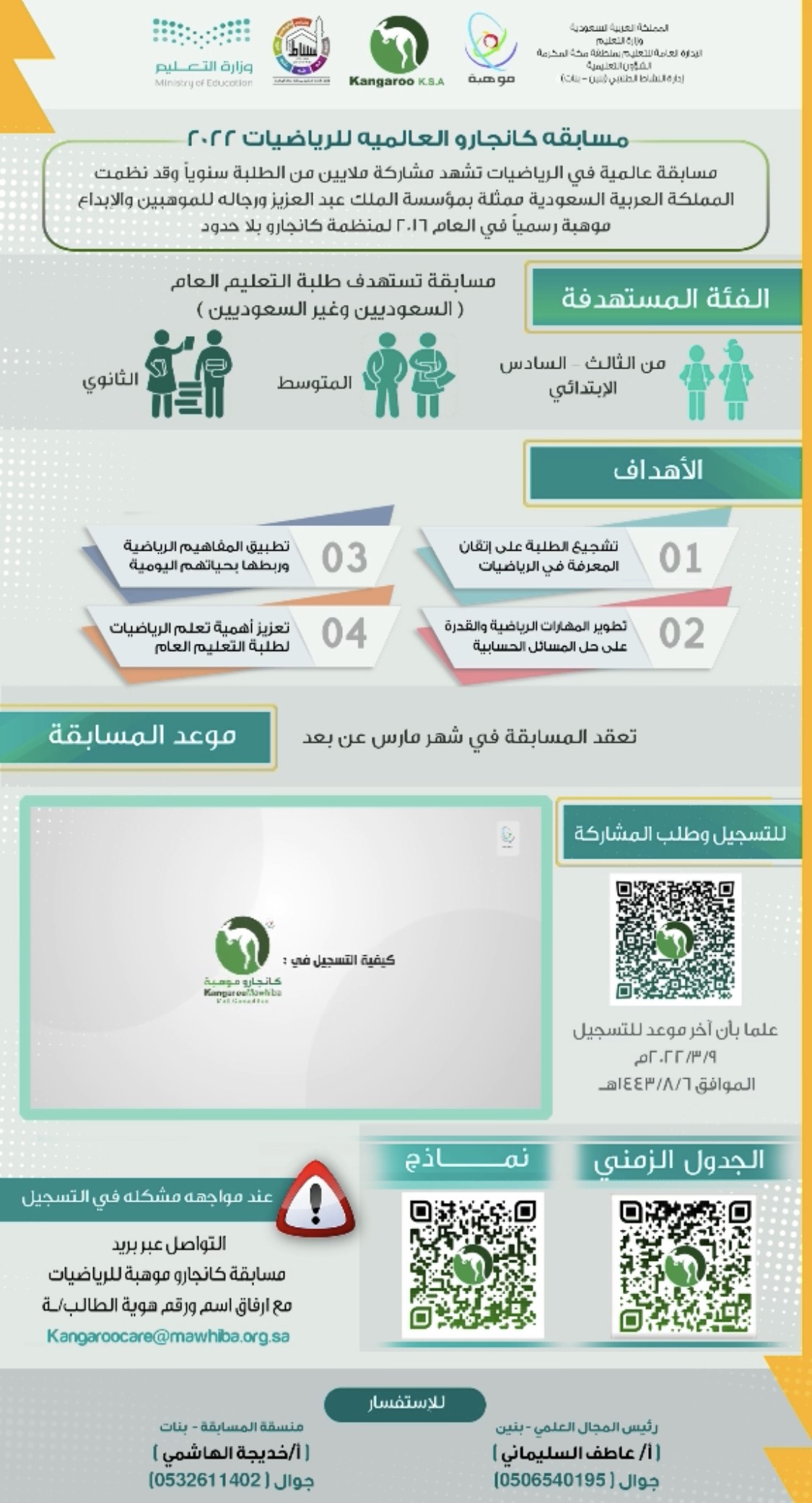 النشاط الطلابي بتعليم مكة تدعو الطلاب/ات للمشاركة في مسابقة كانجارو العالمية للرياضيات ٢٠٢٢